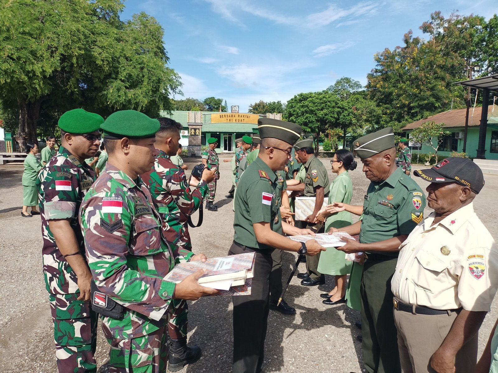 KODIM 1605/BELU, Komandan Kodim 1605/Belu Letkol Arh Andi Yunus, S.I.P memimpin acara corps raport wisuda purna tugas anggota TNI dan PNS Kodim 1605/Belu yang berlangsung di Lapangan Apel Makodim 1605/Belu, Kabupaten Belu NTT, Senin (5/1/2026).