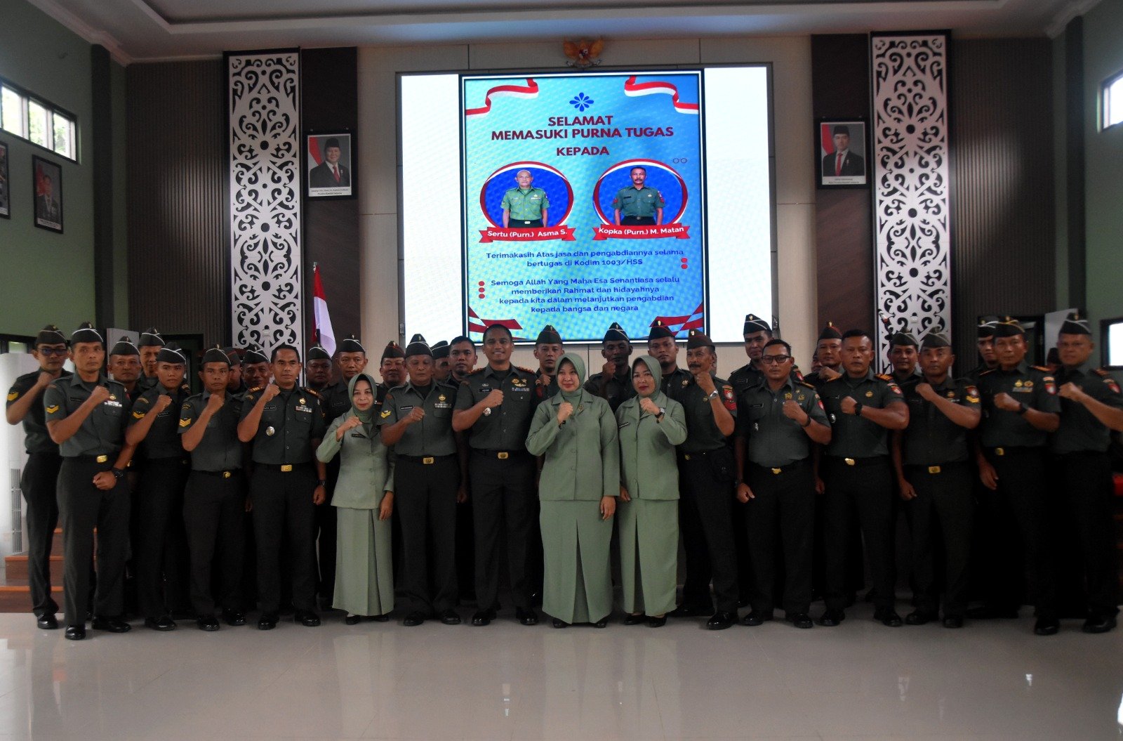Mengakhiri amanatnya, Letkol Inf Ading Priyotantoko menyampaikan harapan agar para prajurit yang telah purna tugas tetap memberikan dukungan moral kepada prajurit Kodim 1003/HSS yang melanjutkan estafet tugas pengabdian. Ia juga memohon doa restu agar seluruh prajurit dan PNS Kodim 1003/HSS dapat terus meningkatkan profesionalisme dalam melaksanakan tugas pokok. Atas nama TNI AD, Dandim secara resmi melepas para prajurit yang pensiun untuk memasuki babak pengabdian baru di masyarakat