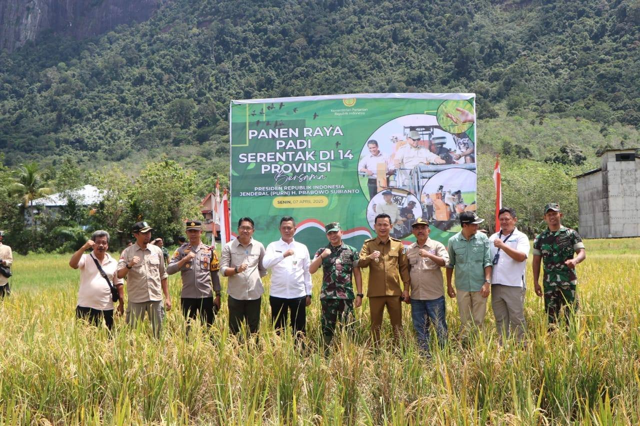 Sintang – Komandan Kodim 1205 Sintang, Letkol Inf Rangga Bayu Widiartha menghadiri kegiatan Panen Raya Serentak 14 Provinsi bersama di Desa Kebong, Kecamatan Kelam Permai, Kabupaten Sintang, Provinsi Kalbar, Senin (07/04/2025).