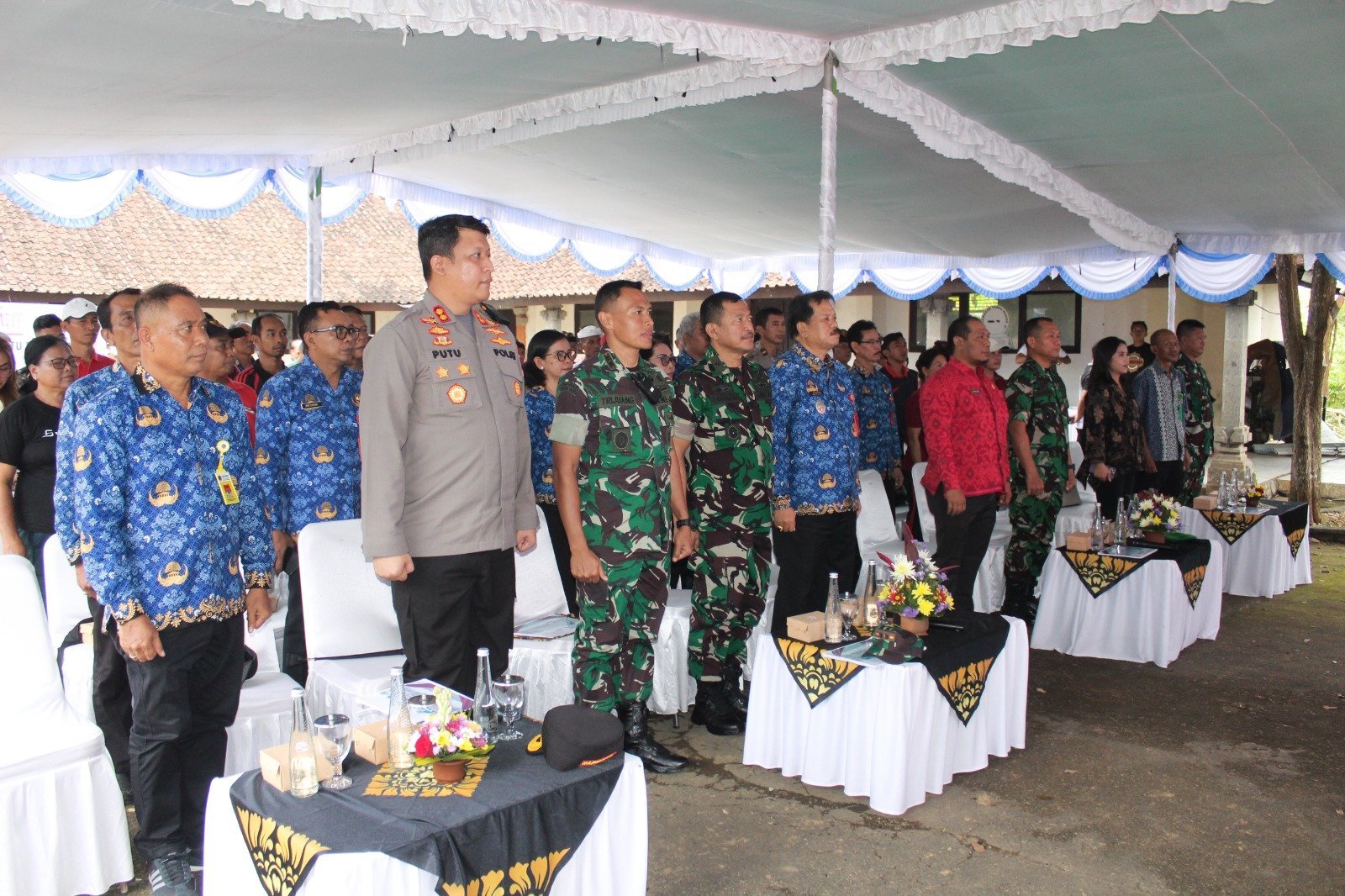 Tabanan — Dandim 1619/Tabanan Letkol Inf Trijuang Danarjati, S.A.P., M.I.P., bersama jajaran Forkopimda Tabanan menghadiri kegiatan Video Conference (Vicon) Ground Breaking Peletakan Batu Pertama Pembangunan Fisik 800 Gerai, Pergudangan, dan Perlengkapan Koperasi Desa/Kelurahan Merah Putih, Jumat (17/10/2025).