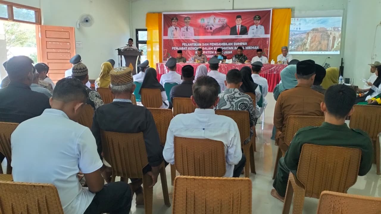 ACEH JAYA — Pemerintah Kecamatan Darul Hikmah melaksanakan pelantikan Penjabat (Pj) Keuchik dalam wilayah Kecamatan Darul Hikmah, Kabupaten Aceh Jaya, yang berlangsung di Kantor Camat Darul Hikmah, Rabu (28/01/2026) pagi.
