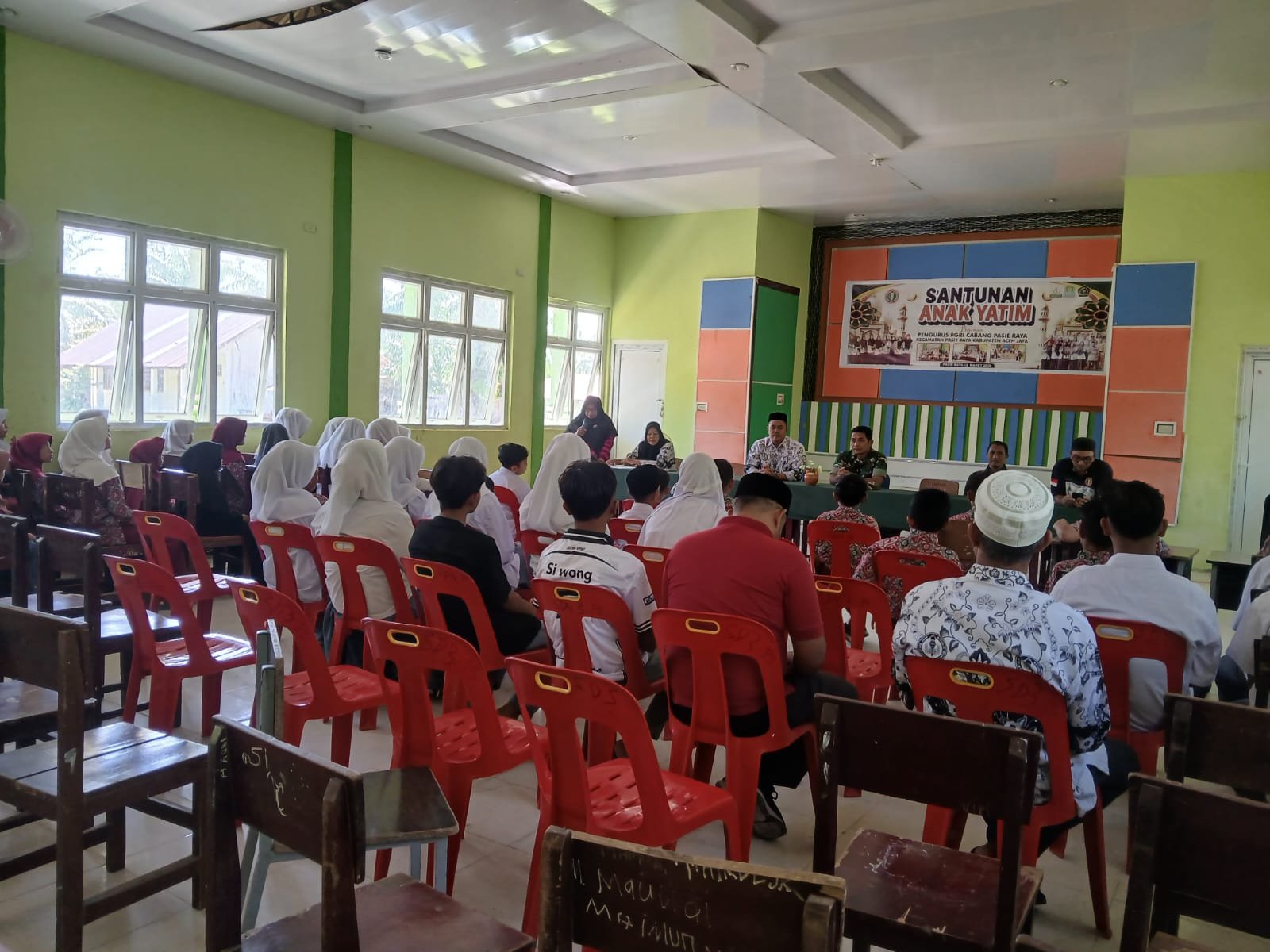 Suasana kegiatan berlangsung penuh kebersamaan antara para guru, siswa, dan masyarakat yang hadir, mencerminkan kepedulian bersama terhadap pendidikan serta kesejahteraan anak-anak di wilayah Pasie Raya.(0114).