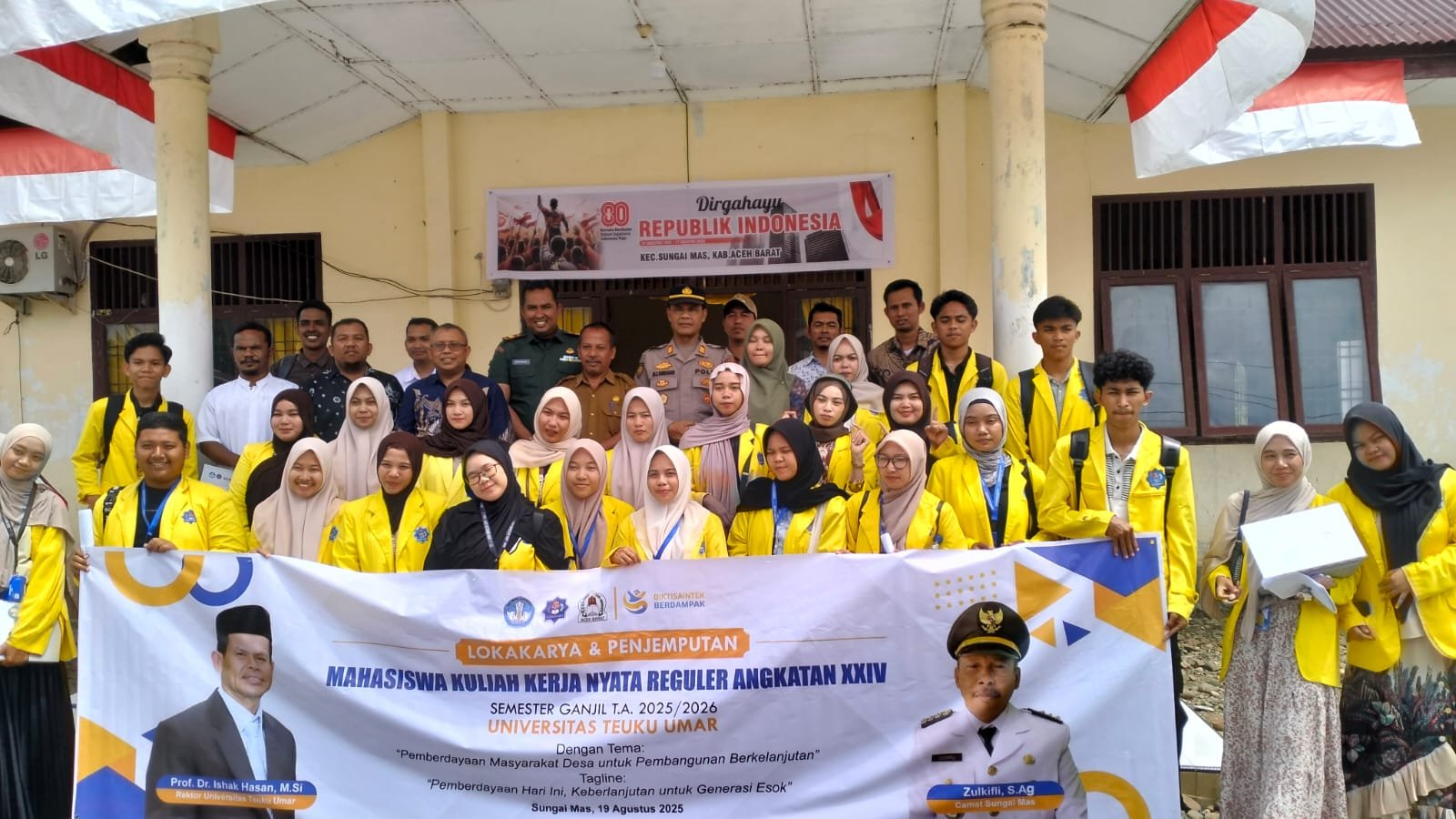Aceh Barat — Danramil 01/Sungai Mas Kodim 0105/Aceh Barat, Lettu Inf Hendrianus Putra, menghadiri kegiatan penjemputan sekaligus perpisahan mahasiswa Kuliah Kerja Nyata (KKN) Universitas Teuku Umar (UTU) di Aula Kantor Camat Desa Kajeung, Kecamatan Sungai Mas, Selasa (19/8/2025).