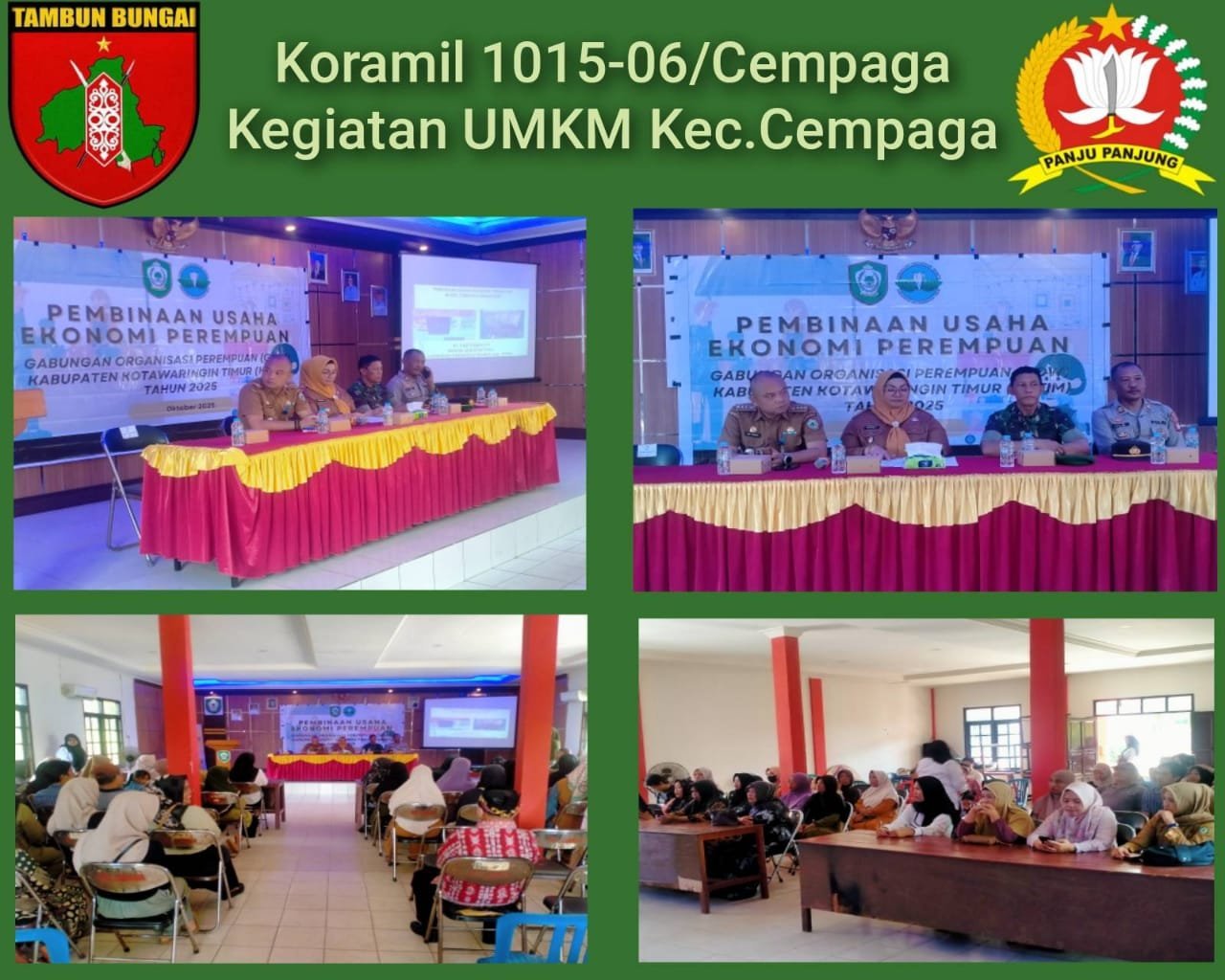 Kotawaringin Timur – Danramil 1015-06/Cempaga Kapten Inf Paino menghadiri kegiatan pembinaan Usaha Ekonomi Perempuan yang diselenggarakan oleh Gabungan Organisasi Perempuan (GOW) Yang Bertempat di Kantor Kecamatan Cempaga,Kabupaten Kotawaringin Timur, Senin (13/10/2025).