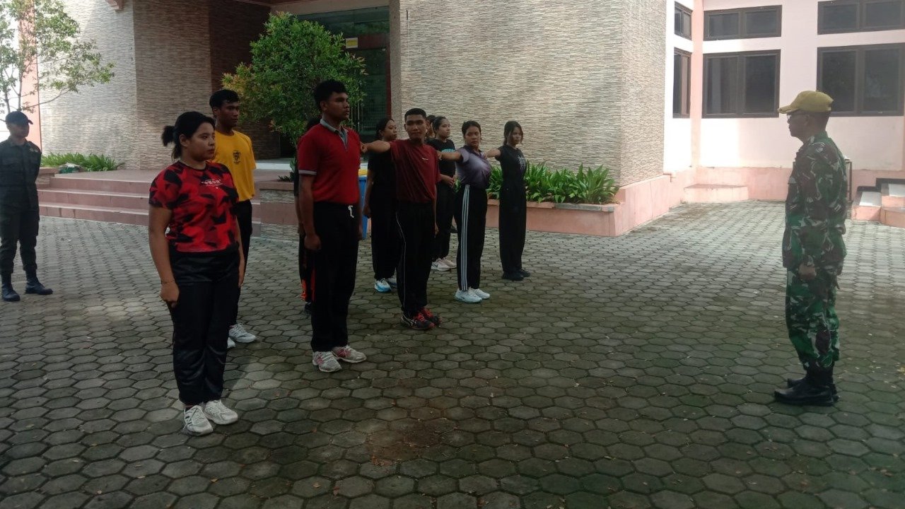 NTT – Kupang – Komandan Resimen Mahasiswa Mahadana, Mayor Inf Hendri Dunant, S.I.P (Danramil 1604-01/Kota), bersama Peltu Tomy Kurumbatu dan Serma Roby Wake, memimpin pelaksanaan Pelatihan Dasar (Diksar) Calon Siswa (Casis) Menwa Angkatan 2024-2025 di Universitas Kristen Arta Wacana Kupang. Pelatihan ini bertujuan untuk menanamkan nilai-nilai disiplin, kebersamaan, dan kedisiplinan pada para peserta, sebagai bagian dari pembentukan karakter pemimpin masa depan. Sabtu (04/01/2025).