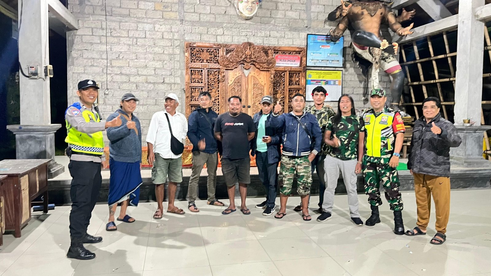 Bangli – Dalam rangka menjaga keamanan dan ketertiban masyarakat pada Penyambutan Malam Tahun Baru 2026, jajaran TNI dan Polri di wilayah Kecamatan Bangli bersinergi dengan Pecalang Desa Adat melaksanakan pemantauan, pengamanan, dan patroli wilayah, Selasa malam (31/12/2025).
