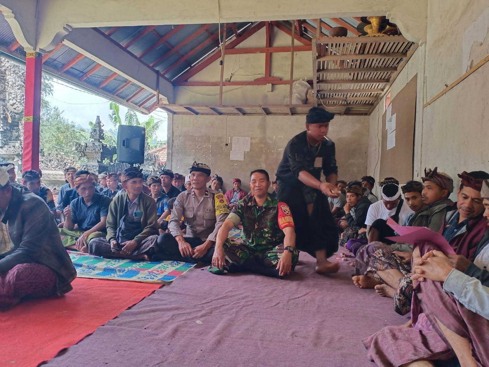 Bangli – Danramil 1626-04/Kintamani Kapten Inf. I Dewa Gede Yudawan menghadiri undanagan penyuluhan kamtibmas terkait dengan sering terjadinya peristiwa gantung diri di Desa Siakin bertempat di Wantilan Pura Dalem Desa Siakin, Kamis (09/01/25)