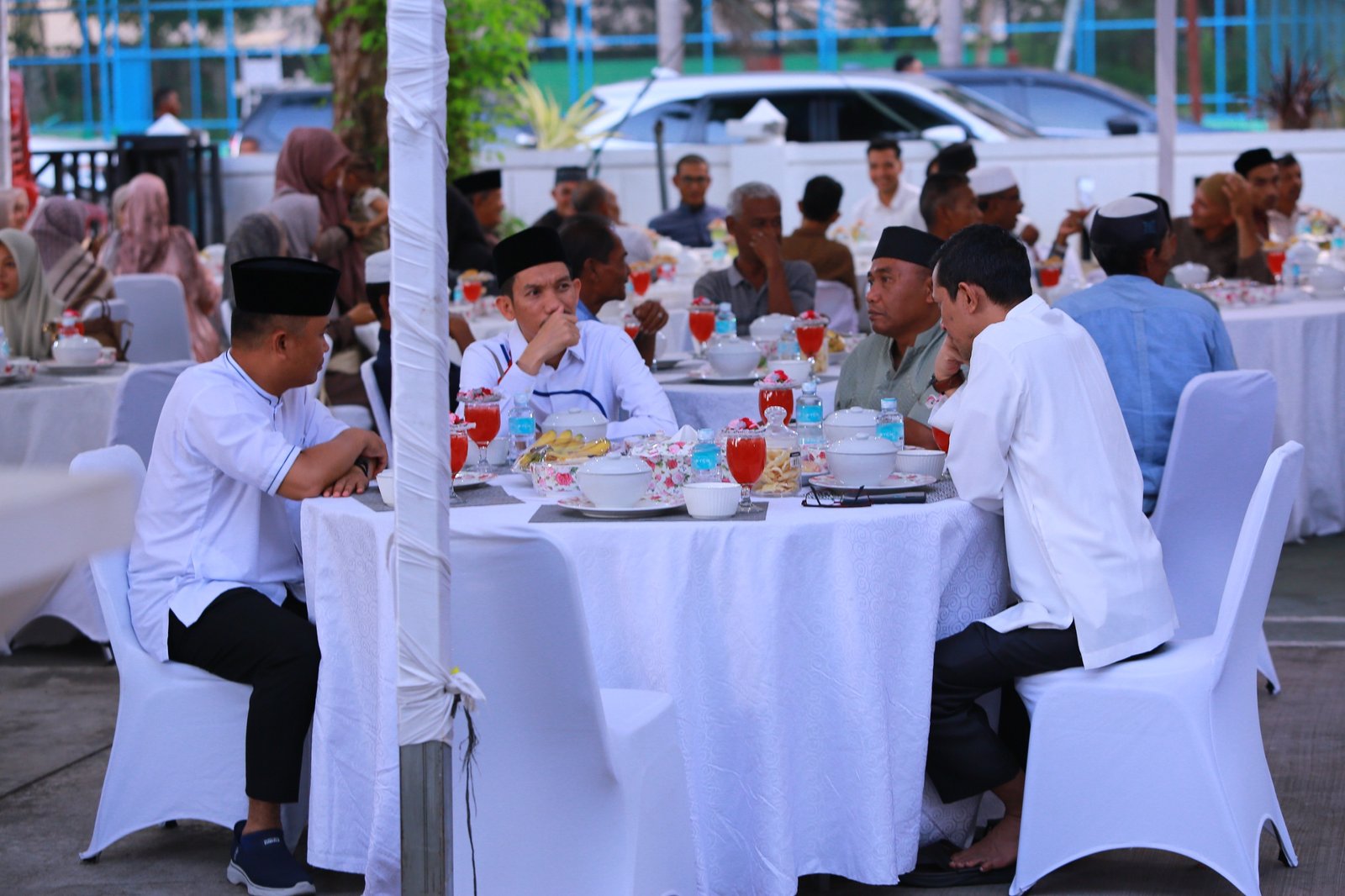 Acara berlangsung dengan penuh kehangatan, diawali dengan tausiah singkat, dilanjutkan dengan buka puasa bersama, serta diakhiri dengan salat Maghrib berjamaah.