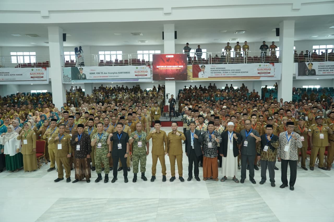 Rakorkab Aceh Barat dipimpin oleh Bupati Aceh Barat Tarmizi, SP., MM. Turut hadir Forkopimda Aceh Barat dan lebih kurang 1.200 peserta yang terdiri dari unsur Pemerintah Kabupaten Aceh Barat, TNI, Polri, serta berbagai elemen terkait lainnya.