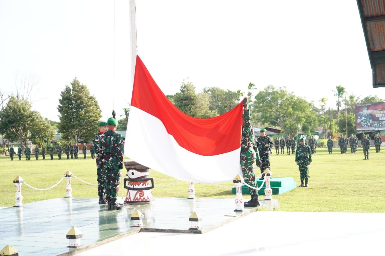 Merauke – Upacara Bendera 17-an Bulan Februari 2026 gabungan Korem 174/ATW dan Kodim 1707/Merauke berlangsung khidmat di Lapangan Makodim 1707/Merauke, Jalan Raya Mandala, Distrik Merauke, Kabupaten Merauke, Provinsi Papua Selatan, Rabu (18/2/2026).