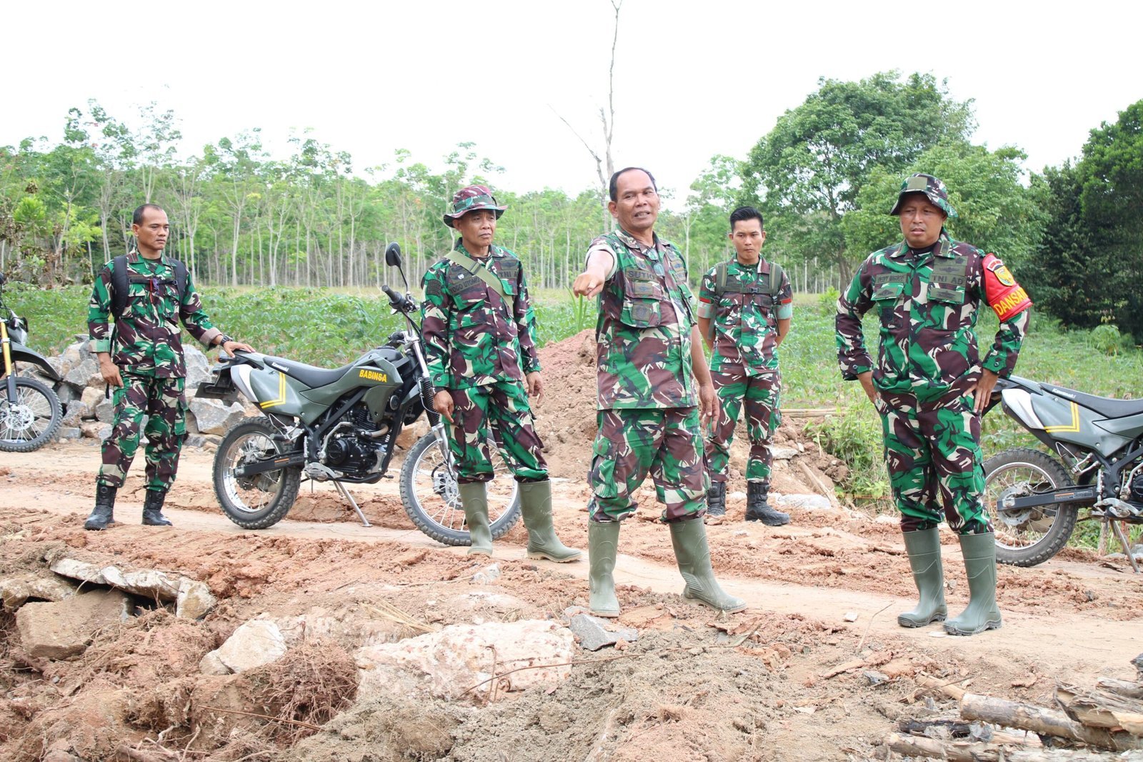 Peninjauan dilakukan dengan melibatkan tim teknis dari Satgas TMMD dan tokoh masyarakat setempat. Selain mengecek kontur tanah dan akses sekitarnya, Dansatgas juga memberikan arahan terkait rencana teknis awal pelaksanaan pembangunan.