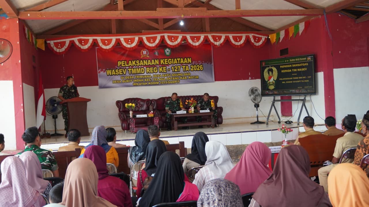 Kotawaringin Timur – Tim Pengawasan dan Evaluasi (Wasev) Mabes AD yang dipimpin oleh Totok Sulistiyono melaksanakan kunjungan kerja ke Desa Tri Buana, Kecamatan Telaga Antang, Kabupaten Kotawaringin Timur, Selasa (03/03/2026).