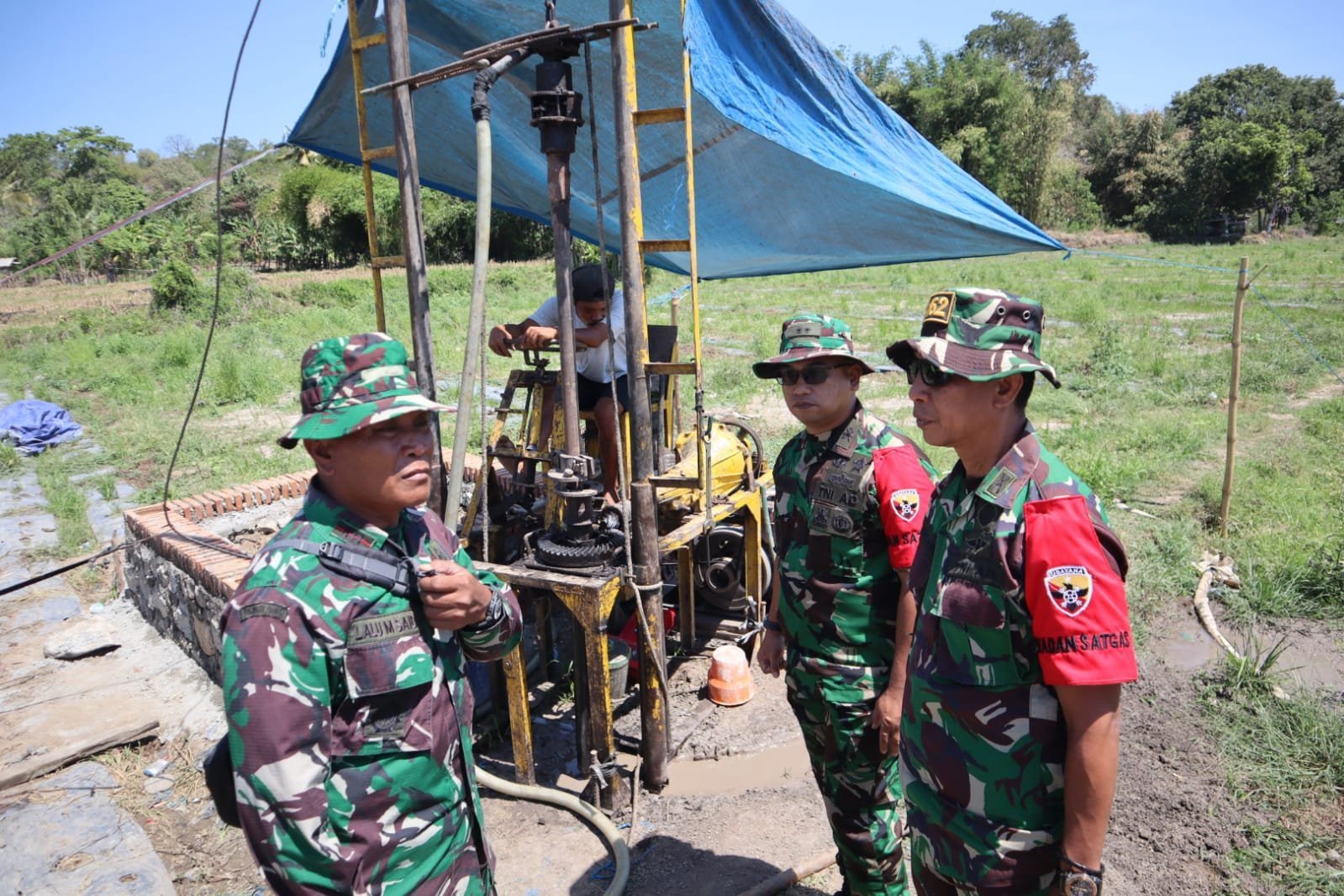 Dalam peninjauan, Dansatgas mengecek langsung titik pengeboran, kelengkapan peralatan, dan kondisi lapangan. Ia memastikan pekerjaan dilakukan sesuai prosedur teknis agar kualitas air yang dihasilkan memenuhi standar kesehatan.
