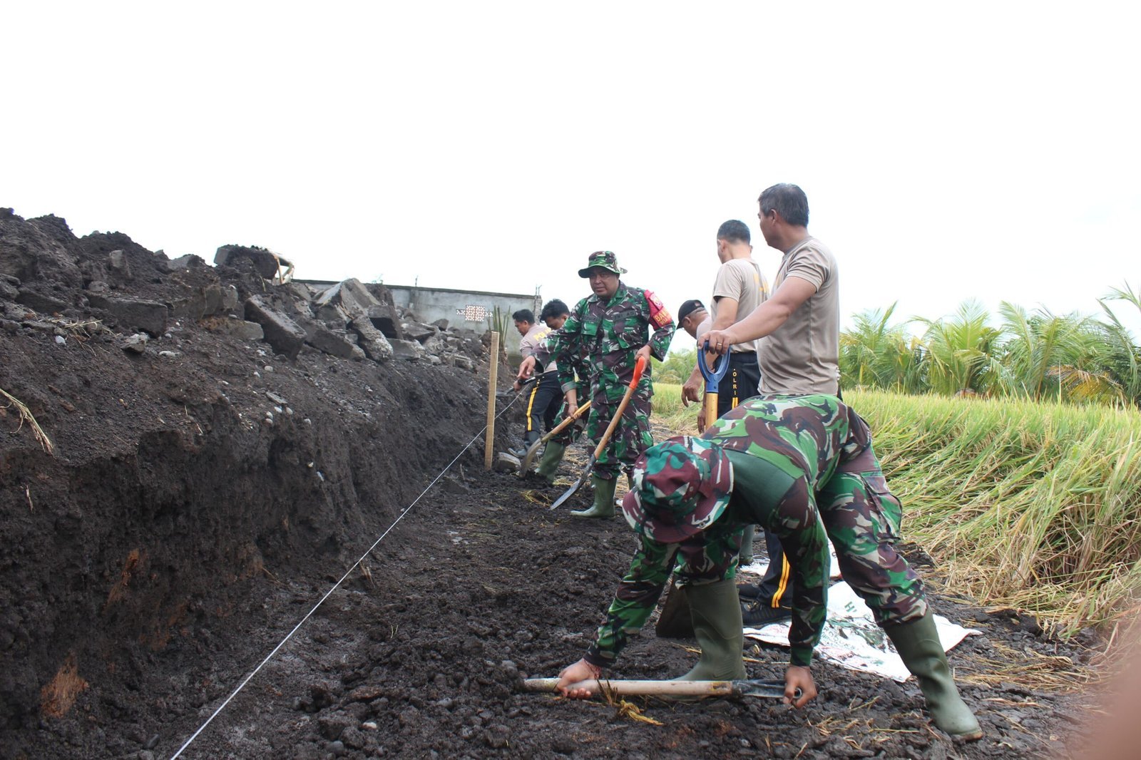 Kegiatan ini melibatkan personel Koramil dan Polsek kerambitan bersama aparat desa serta masyarakat setempat bergotong royong membersihkan material tembok yang runtuh dan menyingkirkan sisa-sisa bangunan agar lingkungan sekitar rumah warga kembali aman serta dapat ditempati.