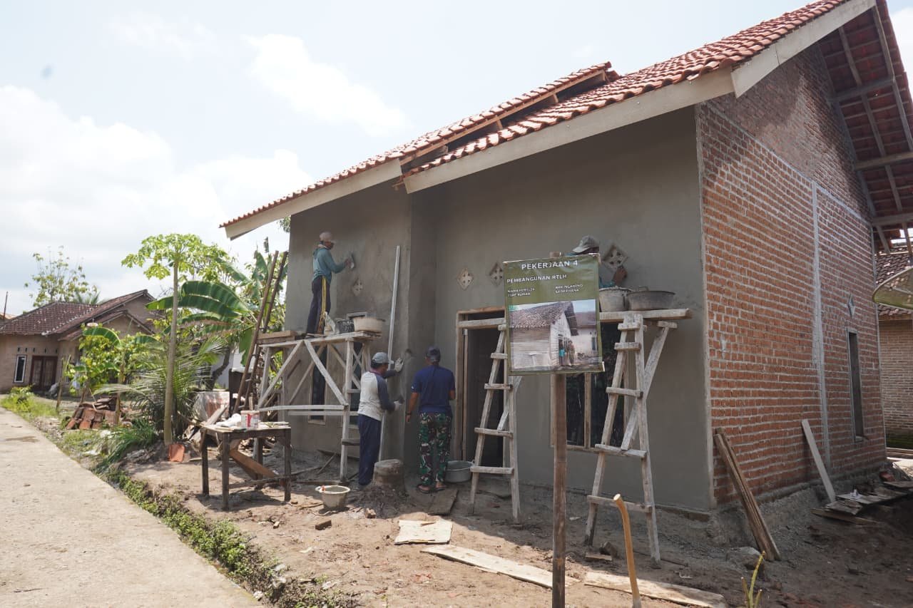Dari Tembok Kasar Menuju Rumah Layak: RTLH Ngadino Masuki Tahap Plester Dinding Depan