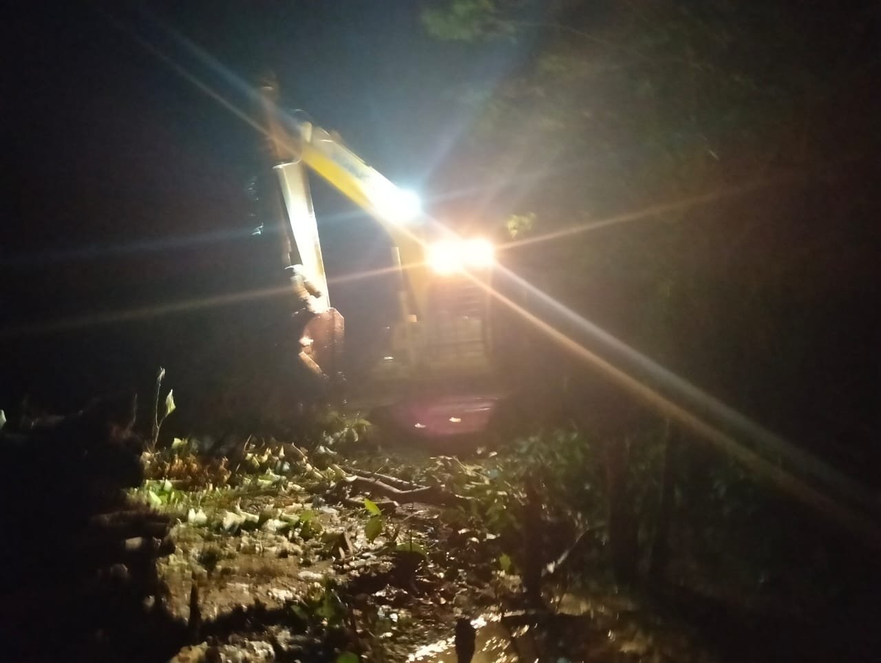 Alat berat seperti grader dan vibro roller terus dioperasikan hingga malam untuk meratakan dan memadatkan permukaan jalan. Warga yang tinggal di sekitar lokasi pun turut membantu dengan menyediakan logistik dan penerangan sederhana.