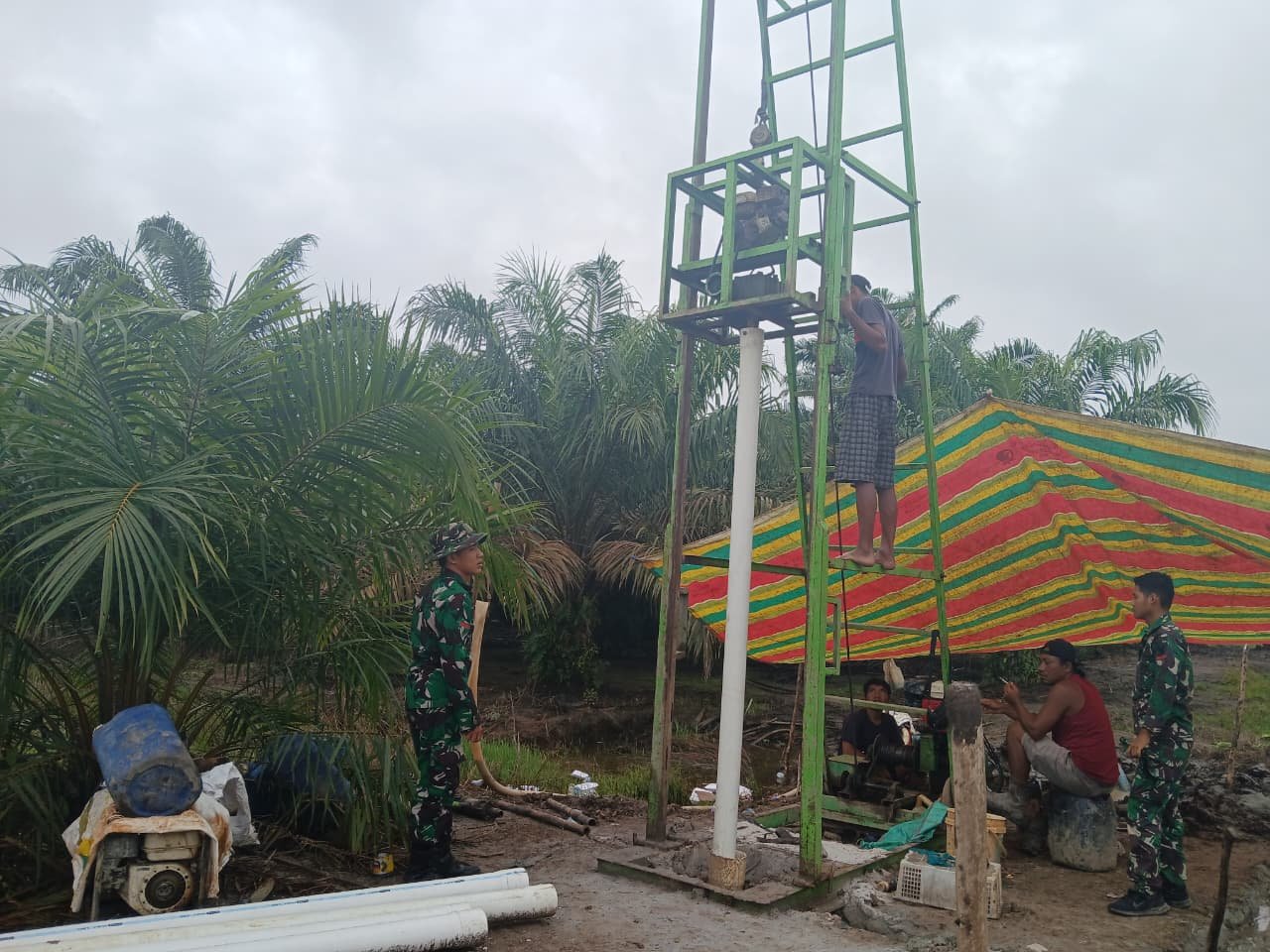 Banyuasin – Untuk memastikan seluruh sasaran program dapat selesai sesuai jadwal, anggota Satgas TMMD ke-127 Kodim 0430/Banyuasin terus menggenjot pekerjaan pembangunan sumur bor titik ke-3 yang berlokasi di belakang Kantor Kepala Desa Wonosari, Kecamatan Pulau Rimau.