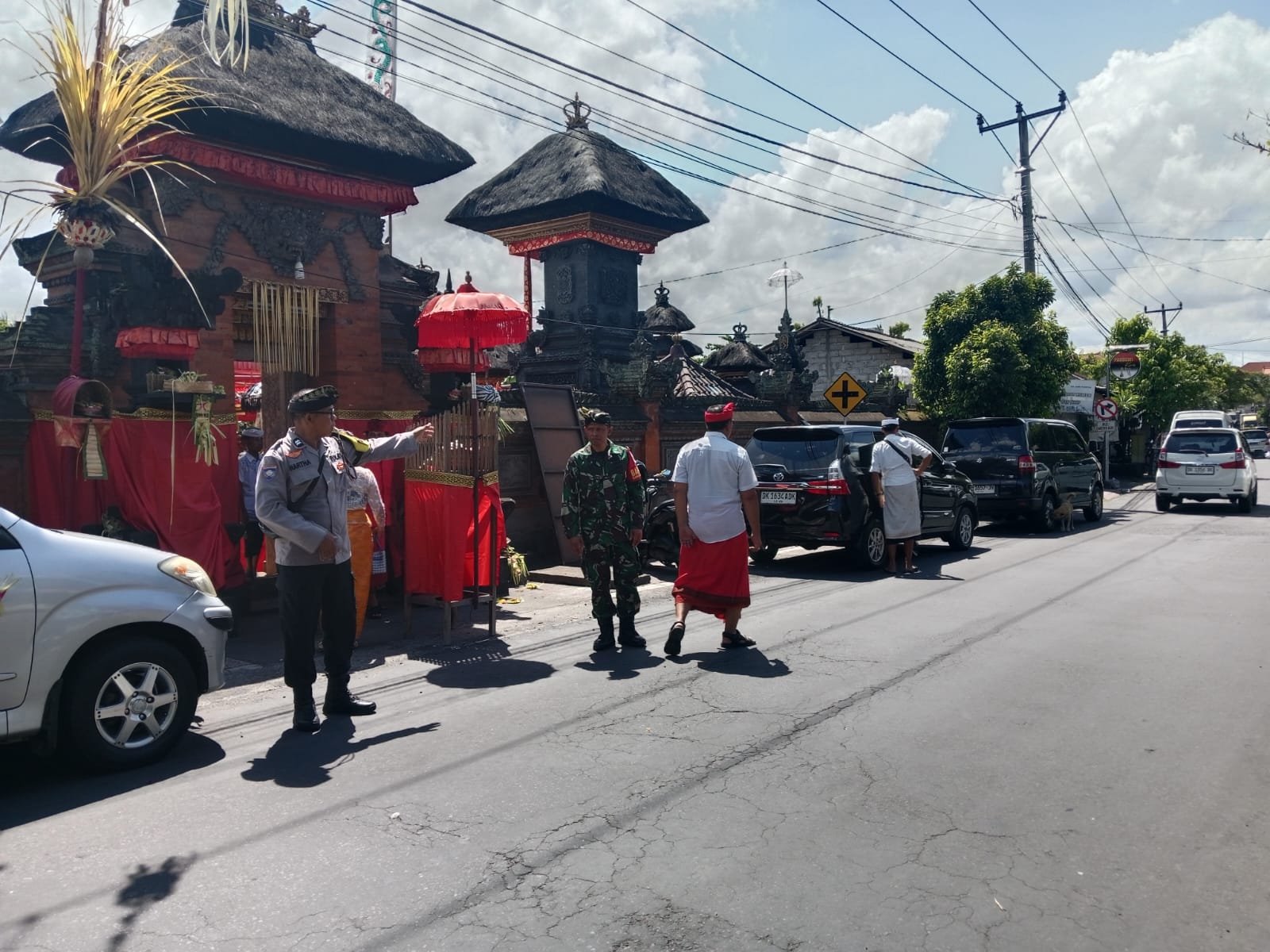 Babinsa Tohan Serka Ketut Sudarma yang turun langsung ke lokasi menegaskan bahwakami hadir melaksanakan pengawalan dan pengamanan guna memastikan rangkaian persembahyangan piodalan berjalan aman dan lancar.