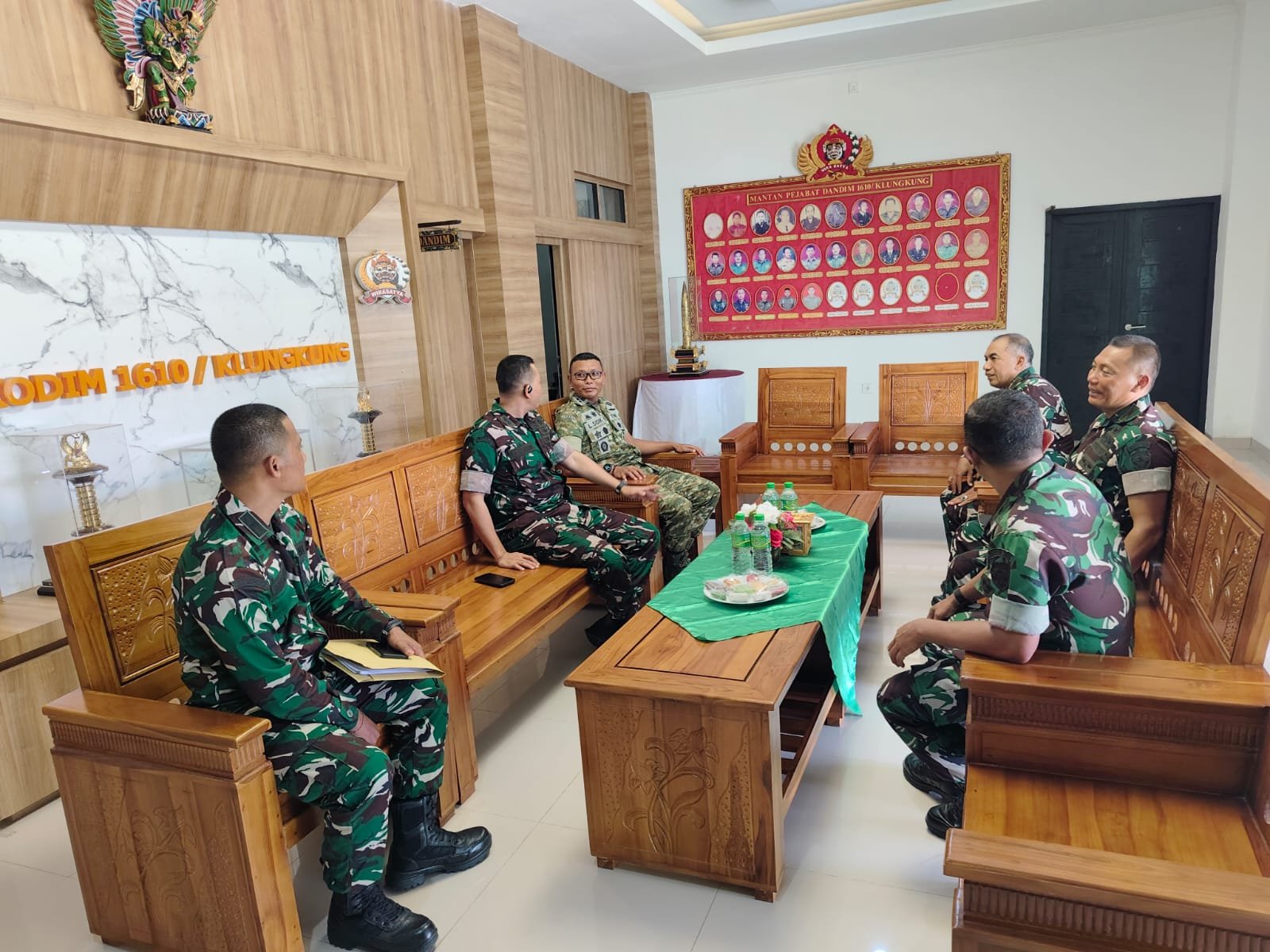 Tiba di Makodim 1610/Klungkung Tim Wasgiat Kodam IX/Udayana yang dipimpin Pabandya Ops Sopsdam IX/Udayana Letkol Inf Livem Hasler diterima langsung oleh Dandim 1610/Klungkung Letkol Kav Sidik Pramono, S.Sos, M.M, Han beserta Perwira staf.