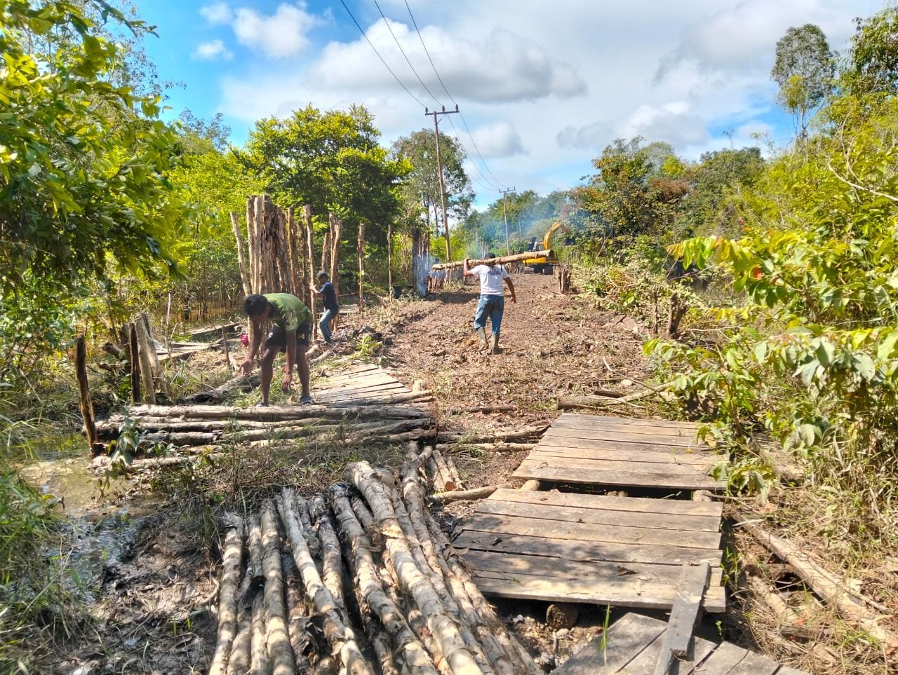 Barito Selatan – Dalam upaya menyukseskan pembangunan jalan melalui program TMMD Ke-124, Satgas Kodim 1012/Buntok terus mendistribusikan kayu cerucuk ke lokasi pembukaan jalan di Desa Talio, Kecamatan Karau Kuala, Kabupaten Barito Selatan. Kayu-kayu tersebut menjadi bagian penting untuk memperkuat konstruksi tanah di lokasi yang memiliki kontur labil.