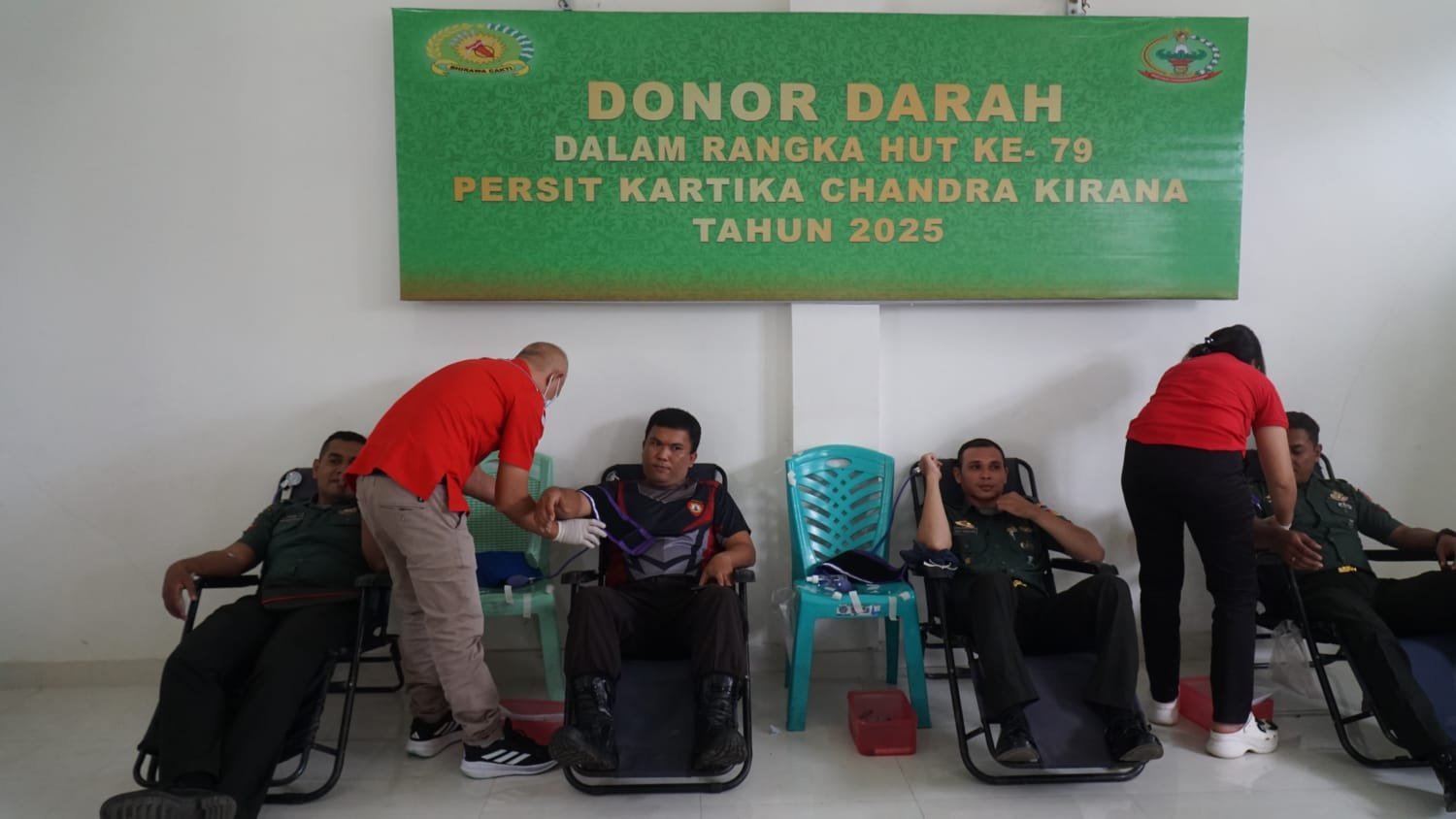Minahasa,- Persit Kartika Chandra Kirana ( KCK ) Cabang XIV Kodim 1302/Minahasa, sekali lagi menggelar kegiatan amal berupa Donor Darah dalam rangka Peringatan Hari Ulang Tahun ( HUT ) Persit KCK Ke-79 Tahun 2025.