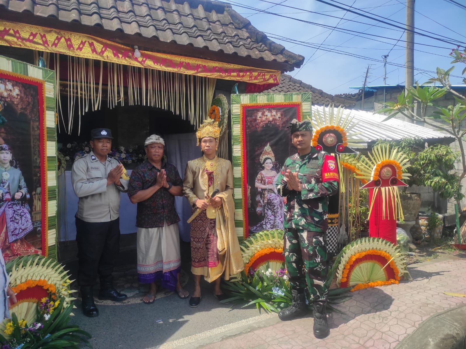 Babinsa Semarapura Kangin Serka Nyoman Suartana menyampaikan dirinya hadir untuk memenuhi undangan sekaligus membantu pengamanan upacara pernikahan putra dari Ida Pedanda Griya Pidada, Lingkungan Lebah Kelurahan Semarapura Kangin.