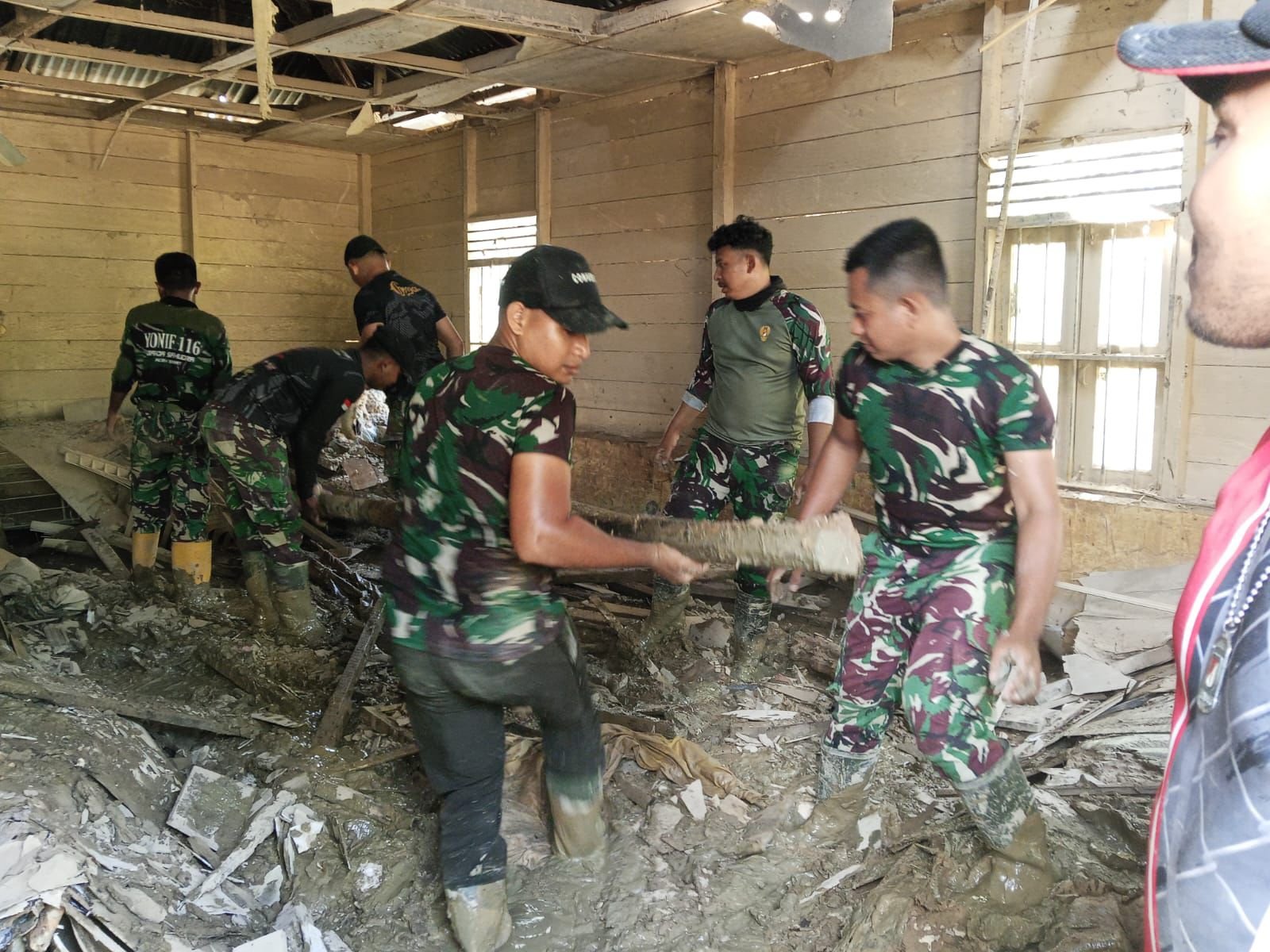 Aceh Tamiang – Prajurit Batalyon Infanteri 117/Ksatria Yudha melaksanakan kegiatan pembersihan di Polindes (Poliklinik Desa) Alur Manis, Kecamatan Rantau, Kabupaten Aceh Tamiang, sebagai wujud kepedulian TNI AD terhadap kebersihan lingkungan dan kesehatan masyarakat.