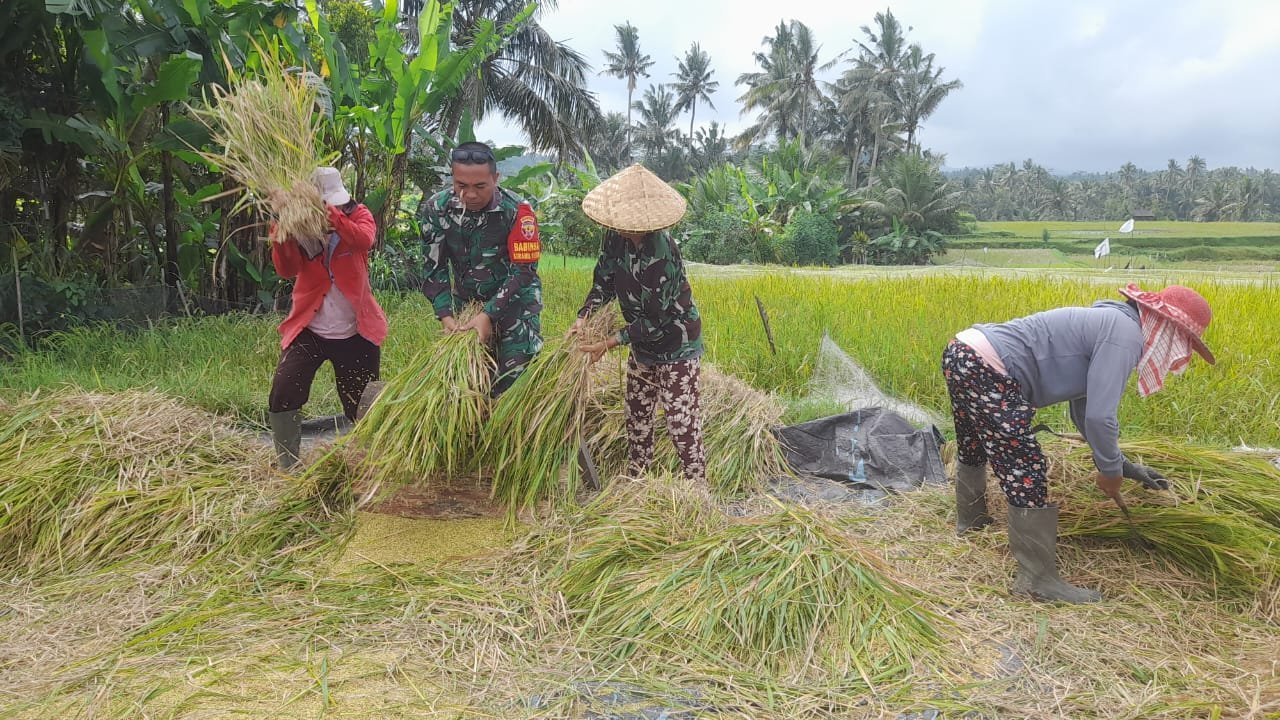 Bangli – Sebagai wujud dukungan TNI, khususnya Babinsa dalam mendukung ketahanan pangan di wilayah binaan, Babinsa Desa Jehem Koramil 1626-03/Tembuku Kodim 1626/Bangli, Sertu Kadek Muliana, dengan penuh semangat turun langsung ke sawah membantu para petani saat memanen padi di Subak Batuaji Tambahan, Desa Jehem, Kecamatan Tembuku, Kabupaten Bangli, Selasa (19/08/2025).