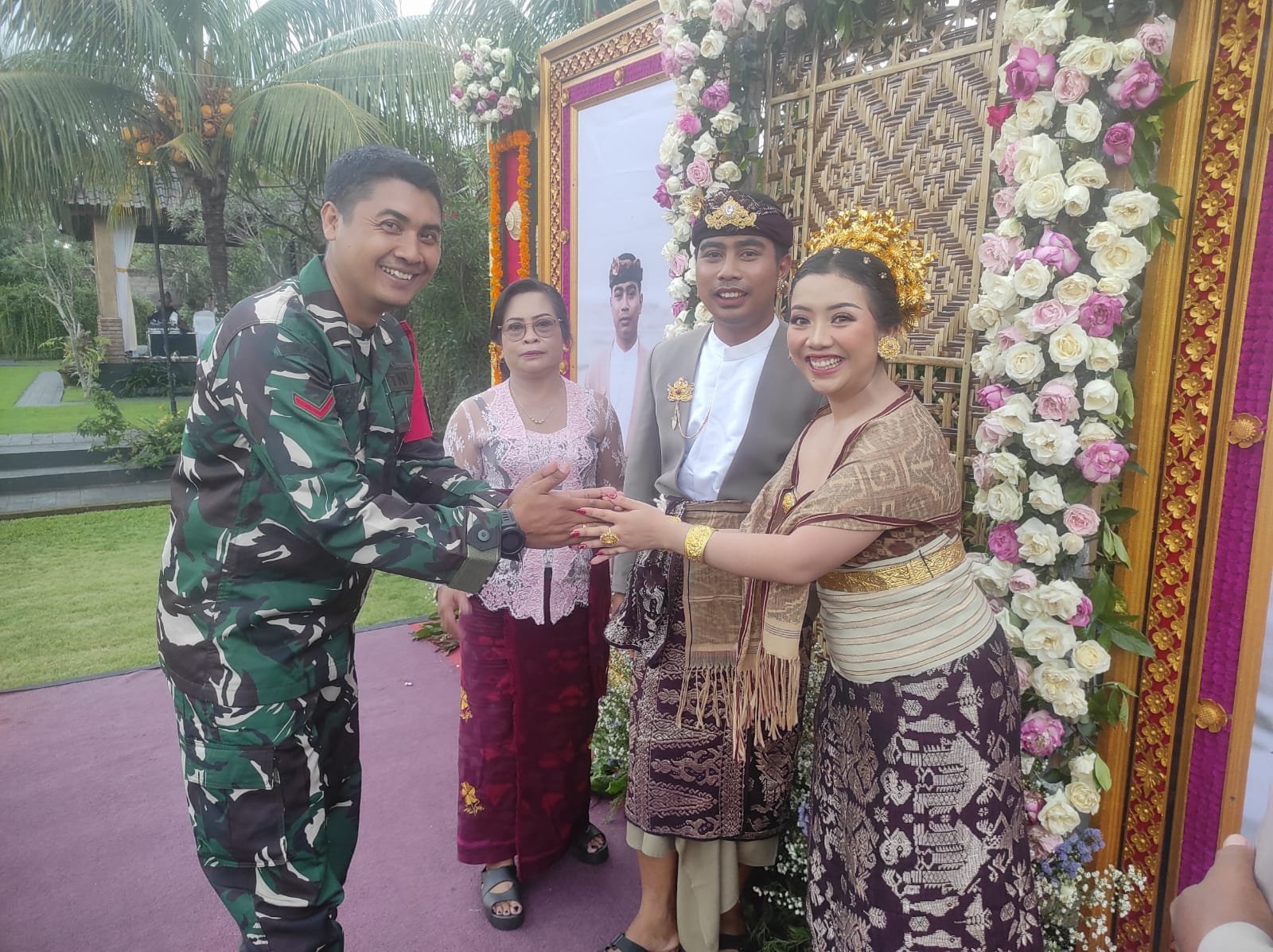 Saat ditemui disela kehadirannya, Bbainsa Kamasan Kopda Kadek Agus menyampaikan bahwa,kehadirian di resepsi pernikahan ini menjadi wujud nyata silahturahmi dan kebersamaan Babinsa dengan seluruh pihak di wilayah terjalin dengan baik.