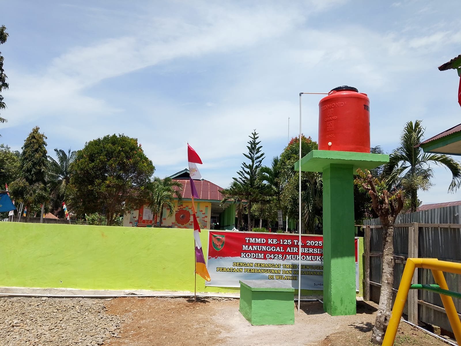 Mukomuko – Anak-anak di TK Desa Sumber Makmur, Kecamatan Lubuk Pinang, kini bisa bersekolah dengan lebih nyaman setelah fasilitas sumur bor dan MCK yang dibangun melalui program TMMD Reguler ke-125 Kodim 0428/Mukomuko dinyatakan selesai 100 persen pada Rabu (20/08/2025).