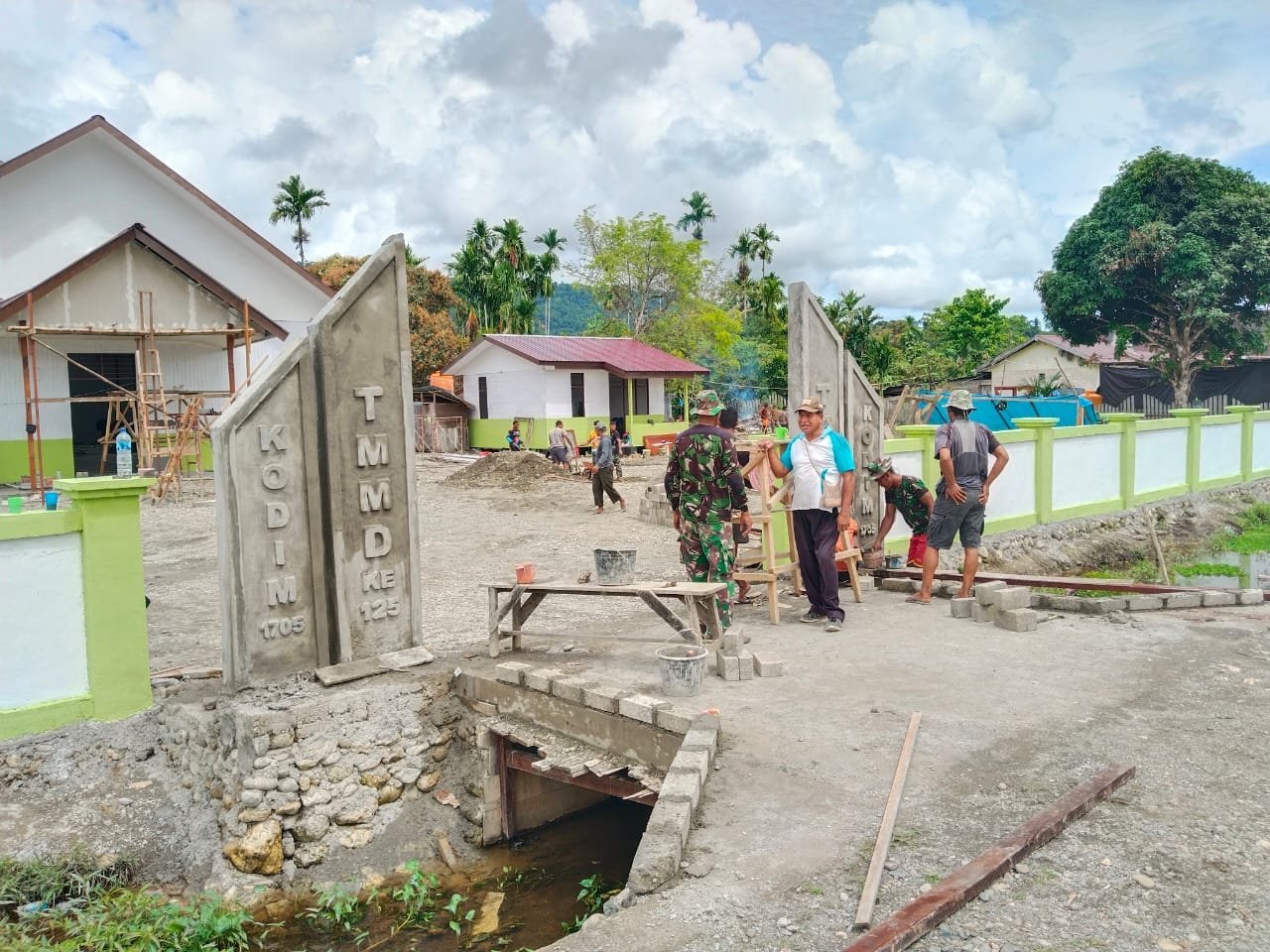 Nabire, 15 Agustus 2025 – Memasuki hari-hari terakhir pelaksanaan TMMD ke-125 TA 2025 Kodim 1705/Nabire, Satgas bersama warga terus mempercepat penyelesaian gapura Gereja GKI Talitakum di Kampung Manunggal Jaya, Legari SP4, Distrik Makimi. Pekerjaan kini berada di tahap finishing dan ditargetkan selesai dalam waktu dekat.
