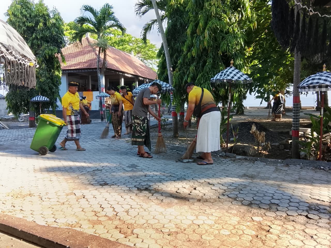 Danramil 1610-04/Nusa Mayor Inf Suparno Hadi menyampaikan bahwa pagi ini bersama Polsek kita lakukan gotong royong bersih-bersih di Pura Dalem Penataran Ped dalam rangka menyongsong pelaksanaan Karya Ngusaba Jagat Nusa Penida yang puncaknya akan digelar pada Senin 6 Oktober 2025 yang bertepatan hari suci purnama.