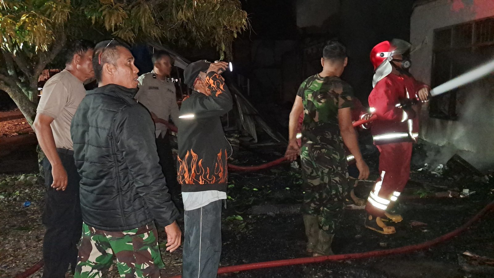 Personel TNI bersama Badan Penanggulangan Bencana Daerah (BPBD), Polri dan masyarakat setempat bahu-membahu berjibaku memadamkan api yang berkobar cukup besar. Dengan peralatan seadanya, warga turut membantu proses pemadaman sembari berupaya menyelamatkan barang-barang yang masih bisa diselamatkan.