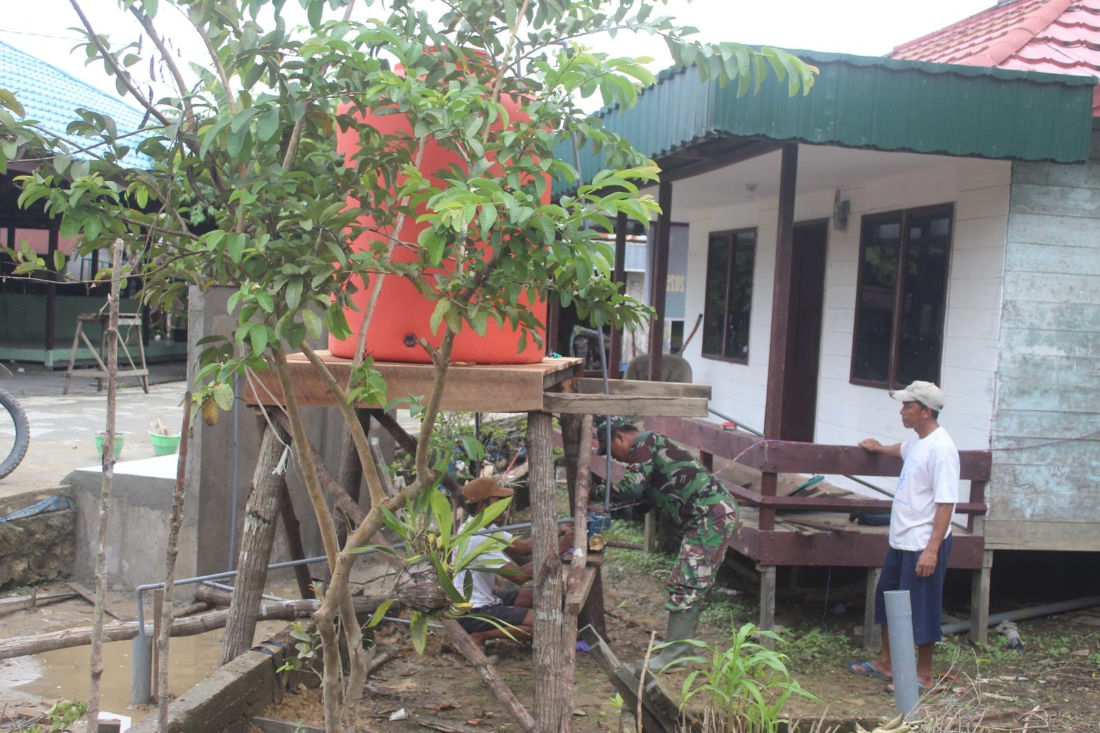 Barito Selatan – Akses air bersih yang layak semakin dekat dengan warga Desa Talio, Kecamatan Karau Kuala, setelah Satgas TMMD Reguler Ke-124 Kodim 1012/Buntok melakukan pemasangan rangka tandon air di Mushola Darul Mu’minin, Rabu (28/5/2025).