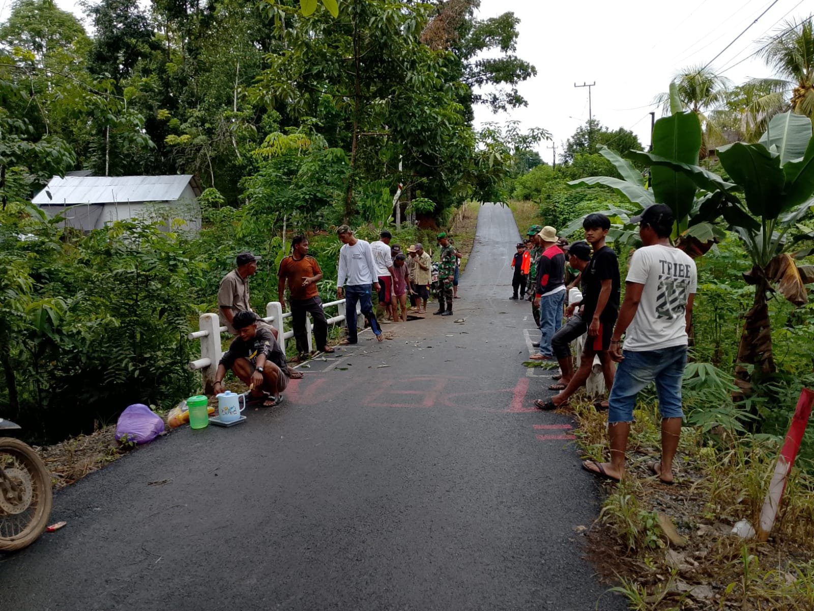 Sebagai langkah cepat, Babinsa Koramil 1010-04/Binuang Kodim 1010/Tapin Serma Roziqin bersama Bhabinkamtibmas, BPBD, serta masyarakat RT 17 dan RT 18 melaksanakan gotong royong untuk memperbaiki siring dan struktur jembatan yang terdampak longsor tersebut.