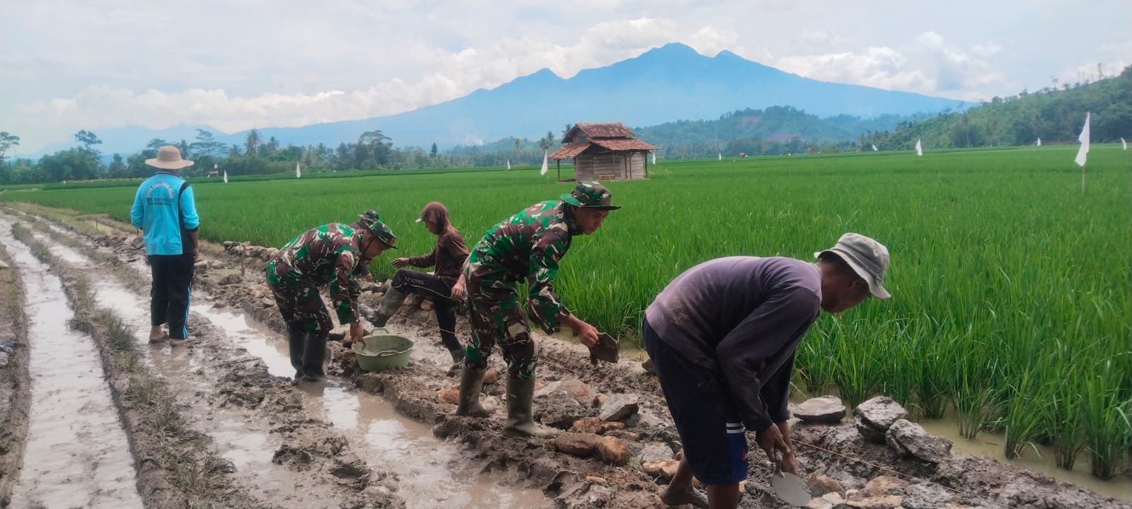 Pesawaran — Semangat kebersamaan terlihat dalam pelaksanaan TMMD ke-127 TA 2026 Kodim 0421/Lampung Selatan di Desa Tanjung Rejo, Kecamatan Way Khilau, Rabu (11/2/2026). Personel Satgas TMMD bersama warga bahu-membahu mengerjakan rabat beton jalan desa yang kini telah mencapai sekitar 52 meter.