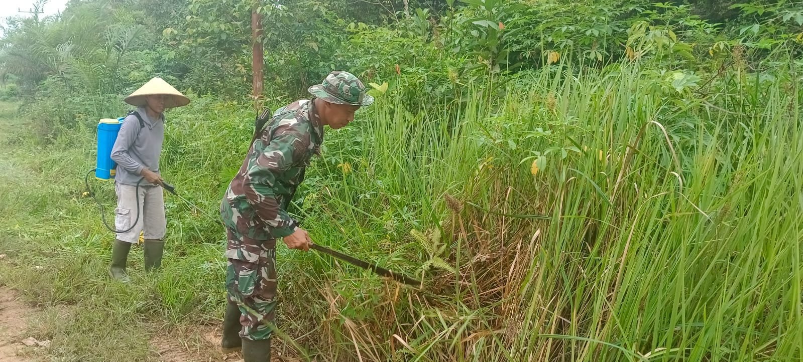 Sukamara — Dalam upaya menjaga kebersihan dan mempererat kebersamaan antara TNI dan masyarakat, Babinsa Natai Kondang Koramil 1014-07/Balai Riam, Sertu Wahyudi, melaksanakan kegiatan gotong royong membersihkan lingkungan Desa Natai Kondang, Kecamatan Permata Kecubung, Kabupaten Sukamara, (3/11/2025).