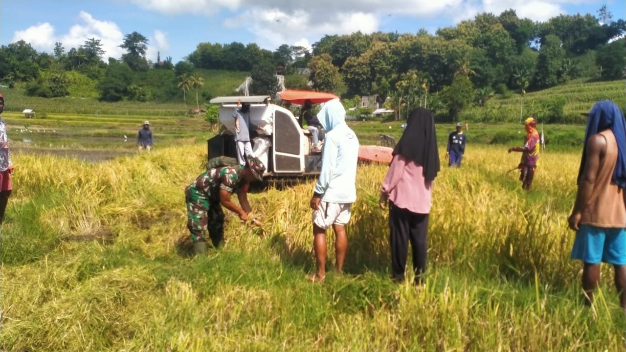 Babinsa Desa Manggeasi Koramil 1614/Dompu bersama PPL, turun ke area persawahan bersama para petani untuk mengikuti panen padi di atas lahan milik bapak Arifin seluas 1 Hektar di wilayah Desa Manggeasi Kecamatan Dompu Kabupaten Dompu. Jumat (07/03/2025).