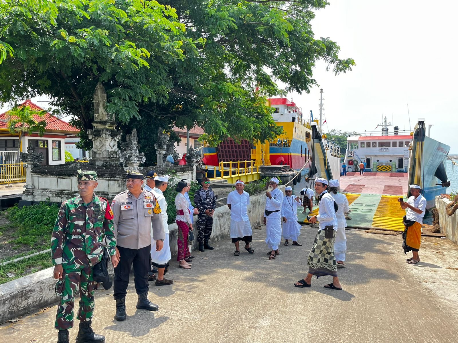Danramil 1610-04/Nusa Penida Mayor Inf Suparno Hadi menyampaikan bahwa untuk mendukung dan memastikan seluruh prosesi upacara hari ini, pihaknya bersinergi Bersama Pos AL, Polsek dan pecalang menggelar pengawalan dan pengamanan Bersama.