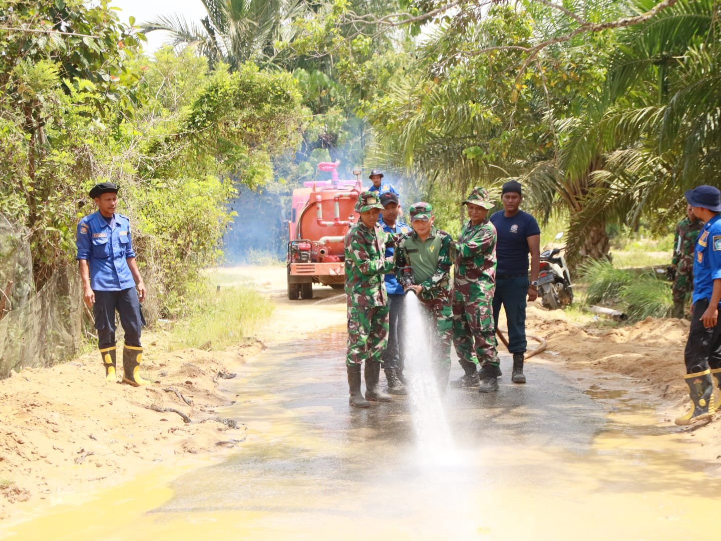 Dengan semangat gotong royong, personel TNI, personel Damkar, para siswa dan guru, serta masyarakat bahu-membahu membersihkan lumpur dan material tanah di badan jalan. Kehadiran TNI di lapangan tidak hanya mempercepat proses pemulihan akses menuju sekolah, tetapi juga memberikan rasa aman serta membangkitkan kembali semangat para pelajar, guru, dan masyarakat sekitar.