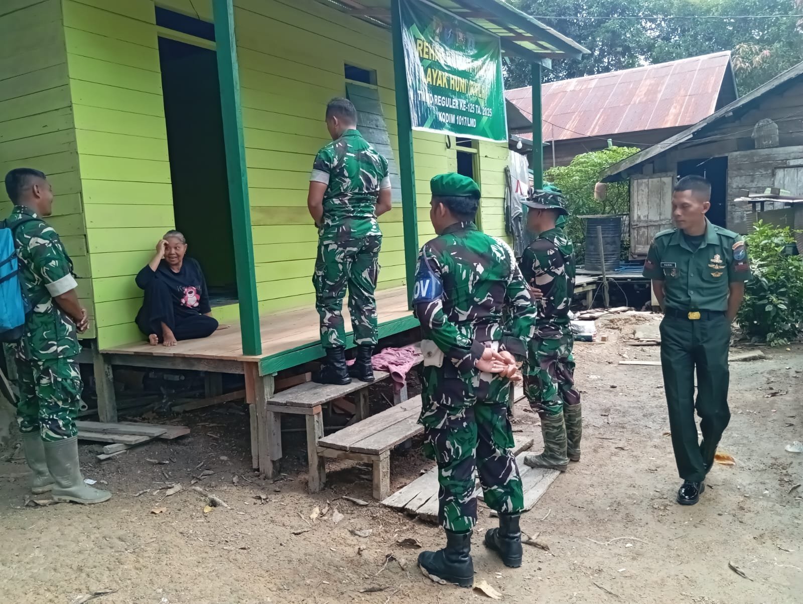 Kunjungan dimulai dari rumah milik pasangan Bapak Ayu (57) dan Ibu Sewan (47). Begitu sampai, Dandim disambut hangat dengan senyum tulus dan jabatan tangan erat. Tanpa ragu, ia melangkah masuk ke teras rumah yang sebagian masih terbuka, duduk bersama tuan rumah di bangku kayu sederhana.
