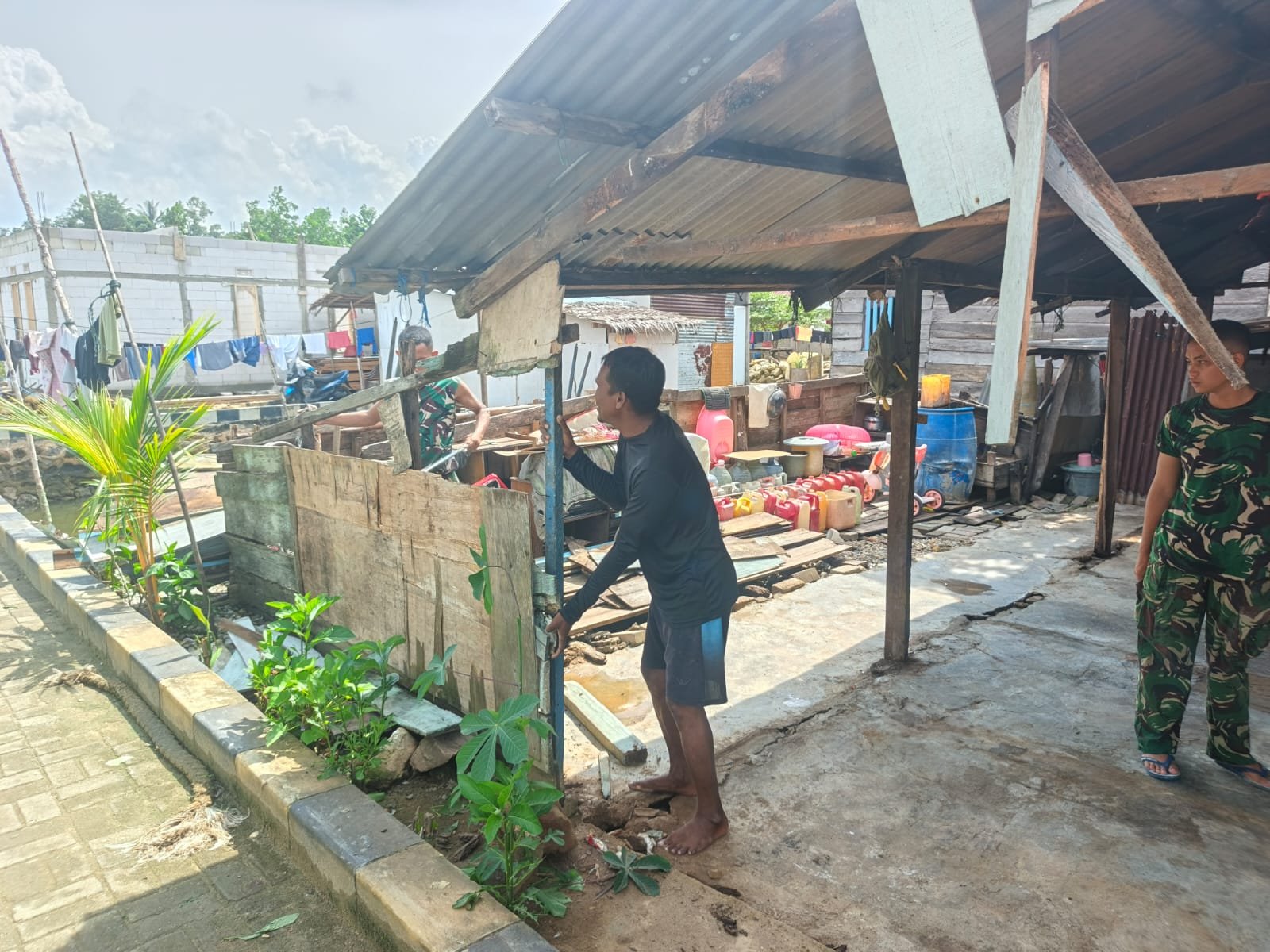 Kendari – Program TNI Manunggal Membangun Desa (TMMD) ke-127 Kodim 1417/Kendari membawa harapan baru bagi keluarga nelayan di Kelurahan Petoaha, Kecamatan Nambo. Satgas TMMD mulai melakukan pembongkaran Rumah Tidak Layak Huni (RTLH) milik Ibu Natia sebagai langkah awal pembangunan rumah layak huni, Kamis (12/2).