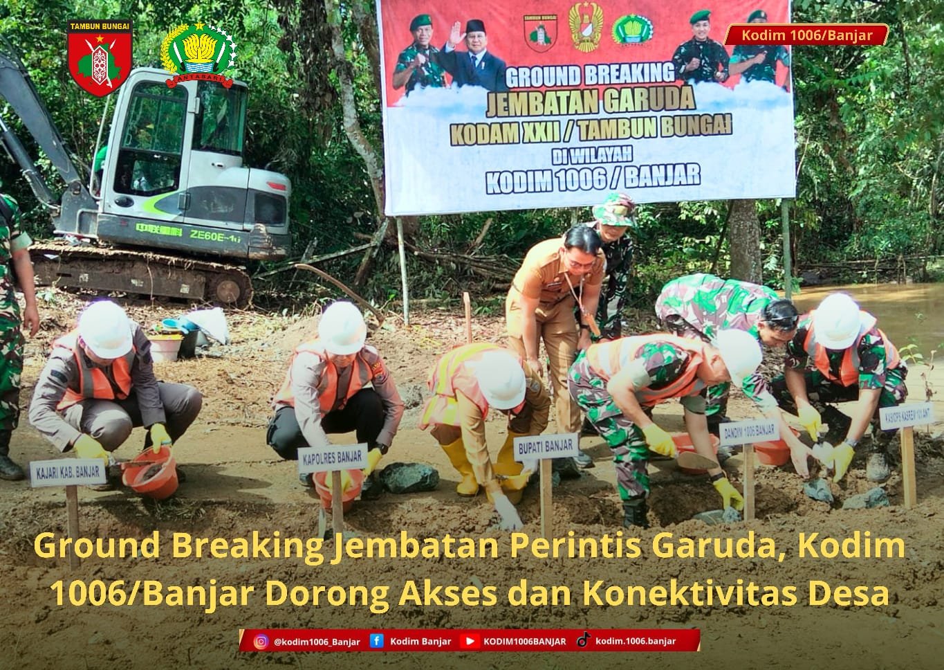 MARTAPURA – Komitmen menghadirkan akses infrastruktur bagi masyarakat pelosok kembali ditunjukkan TNI. Kodim 1006/Banjar resmi menggelar groundbreaking pembangunan Jembatan Perintis Garuda di Desa Lok Tunggul, Kecamatan Pengaron, Kabupaten Banjar, Selasa (6/4/2026) pagi.