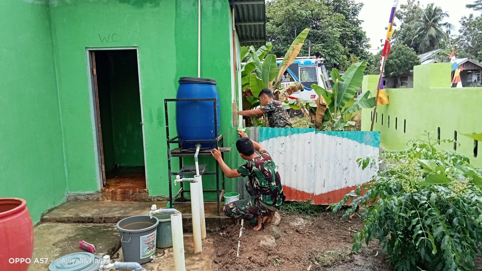 Hari ke-20 TMMD 125, Satgas Lanjutkan Pengecatan Tower dan Kamar Mandi di Desa Sumber Makmur