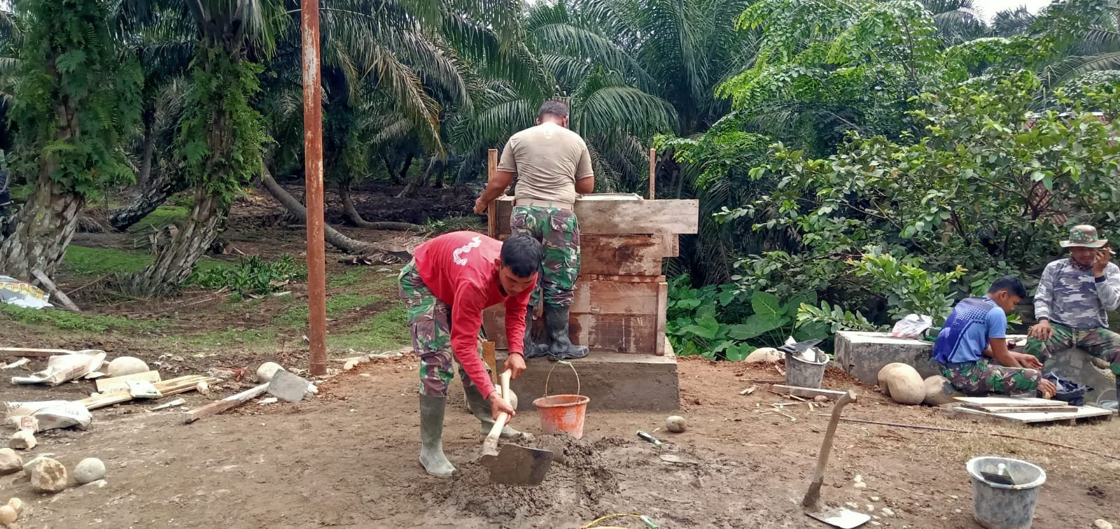 Mukomuko – Memasuki hari ke-28 pelaksanaan TMMD Reguler ke-125, Satgas Kodim 0428/Mukomuko melaksanakan pembangunan Tugu TMMD di Desa Wonosalam, Kecamatan Lubuk Pinang, Selasa (19/08/2025). Tugu tersebut menjadi simbol kegiatan TMMD yang telah dilaksanakan di wilayah Kabupaten Mukomuko tahun 2025.