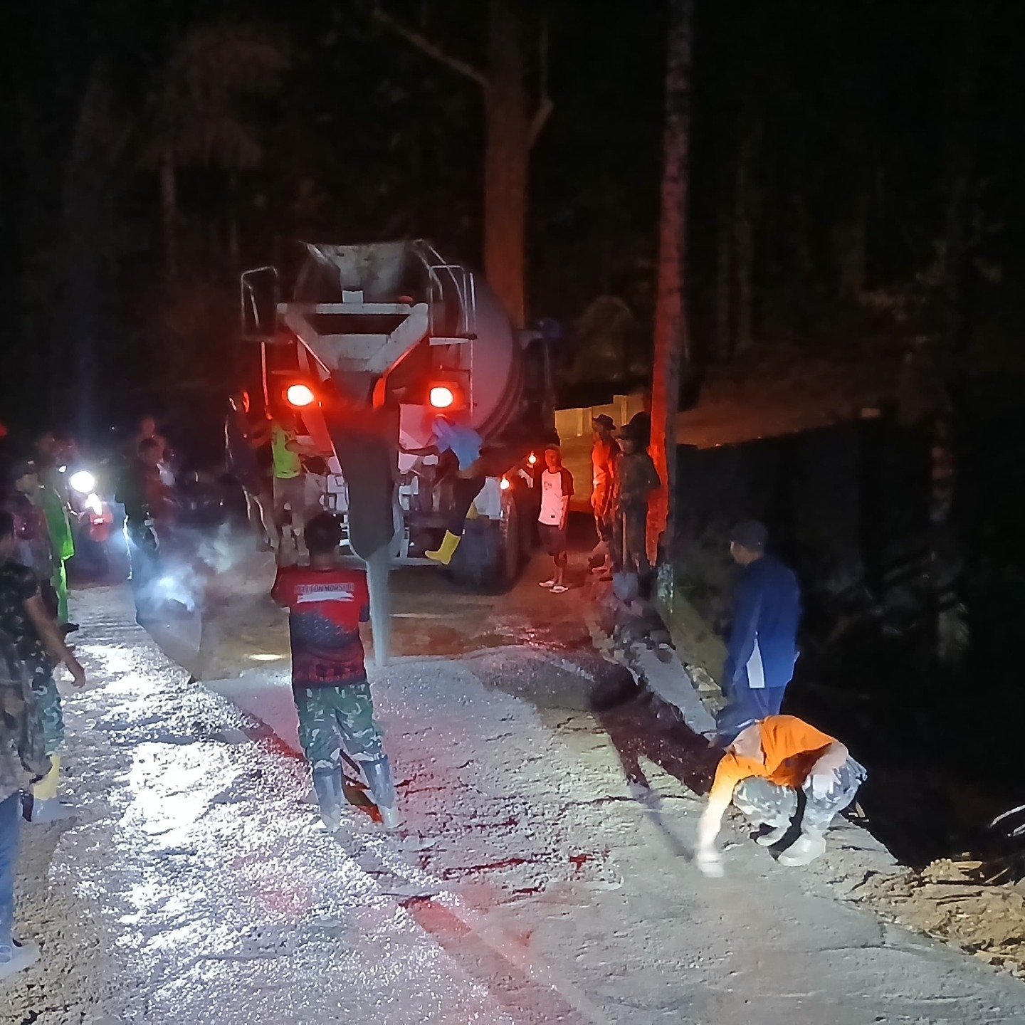 Sejak pagi hingga larut malam, para prajurit bersama masyarakat terus bergotong royong menuntaskan pembangunan jalan penghubung antardusun, meski cuaca tak bersahabat. Suasana kebersamaan begitu terasa di lokasi sasaran ketika Satgas dan warga bekerja bahu membahu di bawah guyuran hujan.