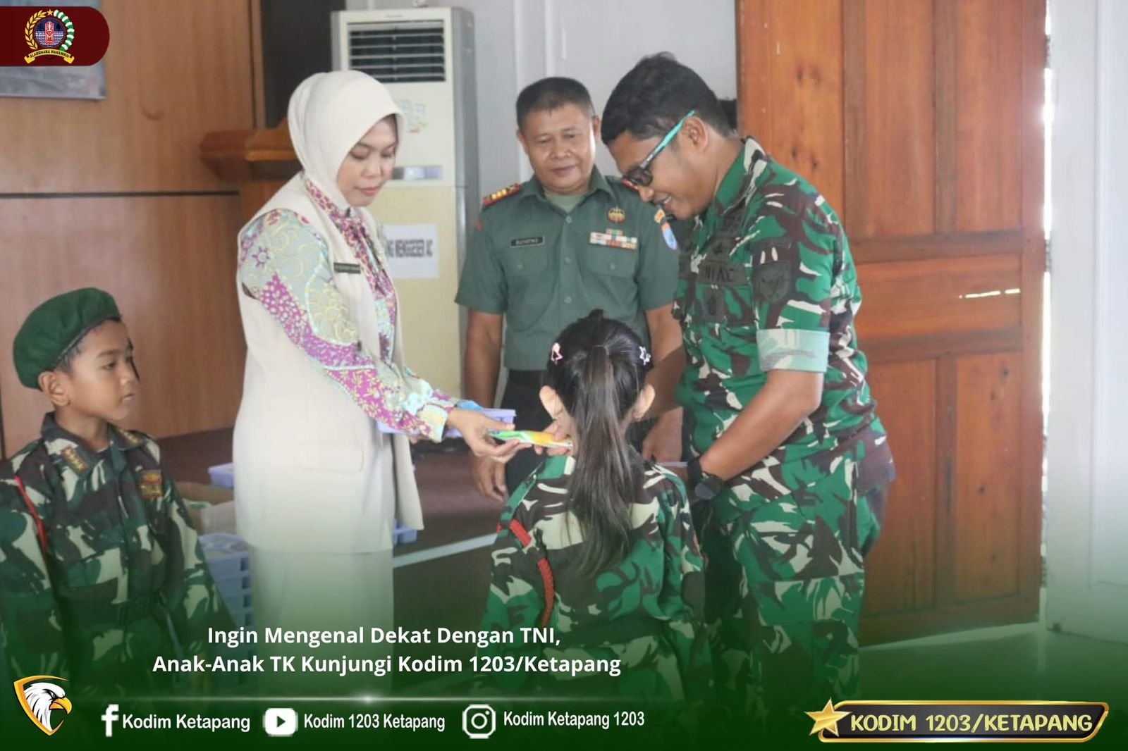 Dandim 1203/Ketapang Letkol Inf Abu Hanifah, S.H., M.I.P mengatakan, kami sangat senang menerima kunjungan dari TK Kartika XVII-10 Ketapang.