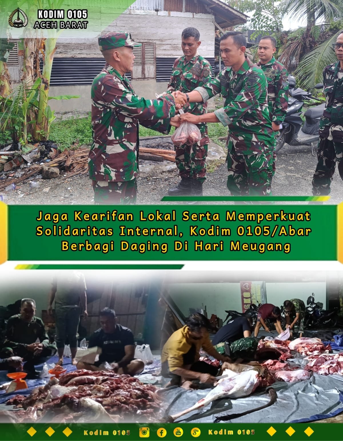 Dengan semangat kebersamaan dan nilai luhur tradisi Meugang, Kodim 0105/Abar berkomitmen terus menjaga kearifan lokal sekaligus memperkuat soliditas internal dalam menyongsong Ramadhan 1447 Hijriah.(0105).