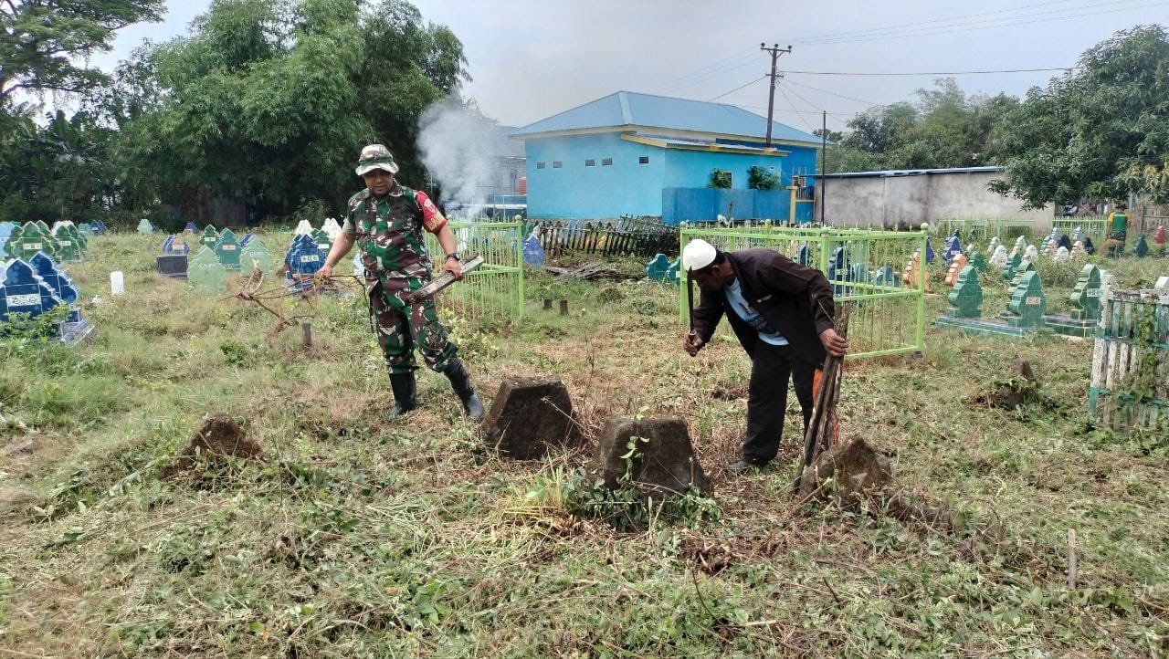 Kegiatan ini dilakukan sebagai bagian dari upaya menjaga kebersihan lingkungan, terutama di bulan suci Ramadhan, di mana masyarakat lebih banyak berziarah ke makam keluarga. Dengan penuh semangat, warga dan Babinsa membersihkan area pemakaman dari rumput liar, sampah, serta melakukan perbaikan sederhana di beberapa titik.