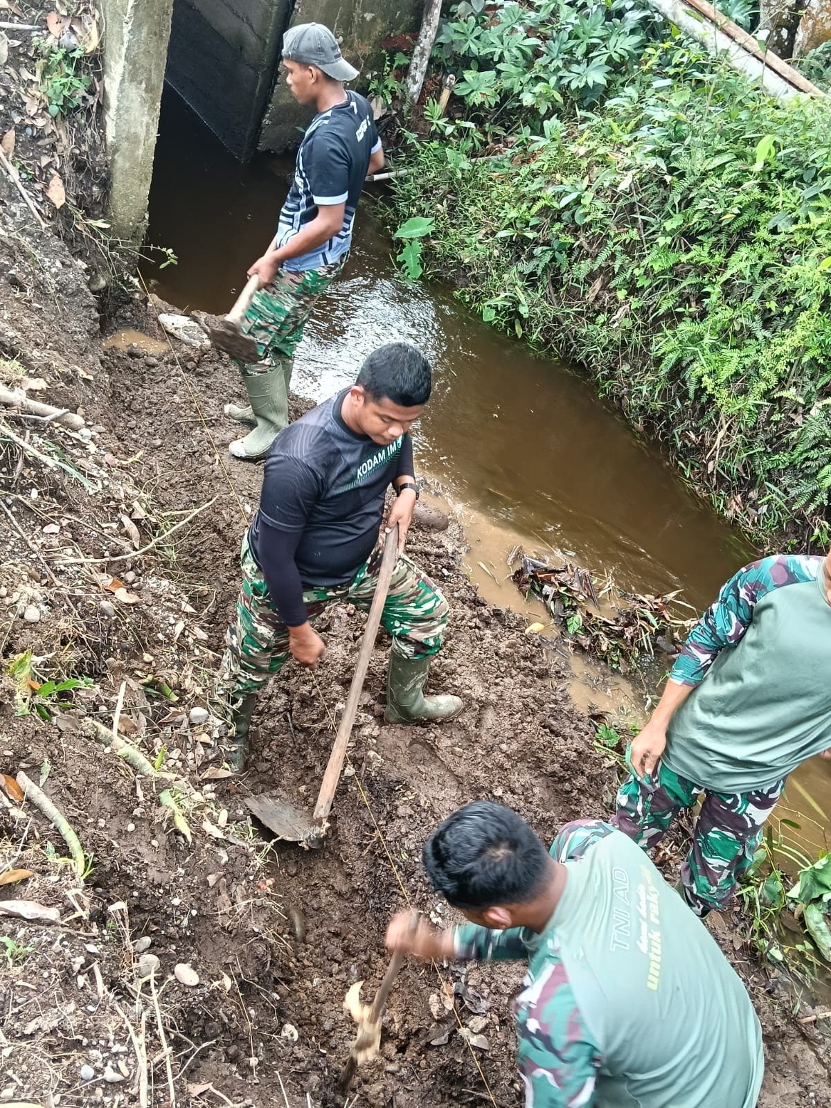 Fokus pekerjaan saat ini adalah penggalian lubang pondasi wingwall yang menjadi bagian penting dari konstruksi penunjang infrastruktur. Dengan alat sederhana dan semangat gotong royong, personel Tim Satgas TMMD bersama masyarakat bahu-membahu memastikan setiap tahapan pekerjaan berjalan sesuai rencana.